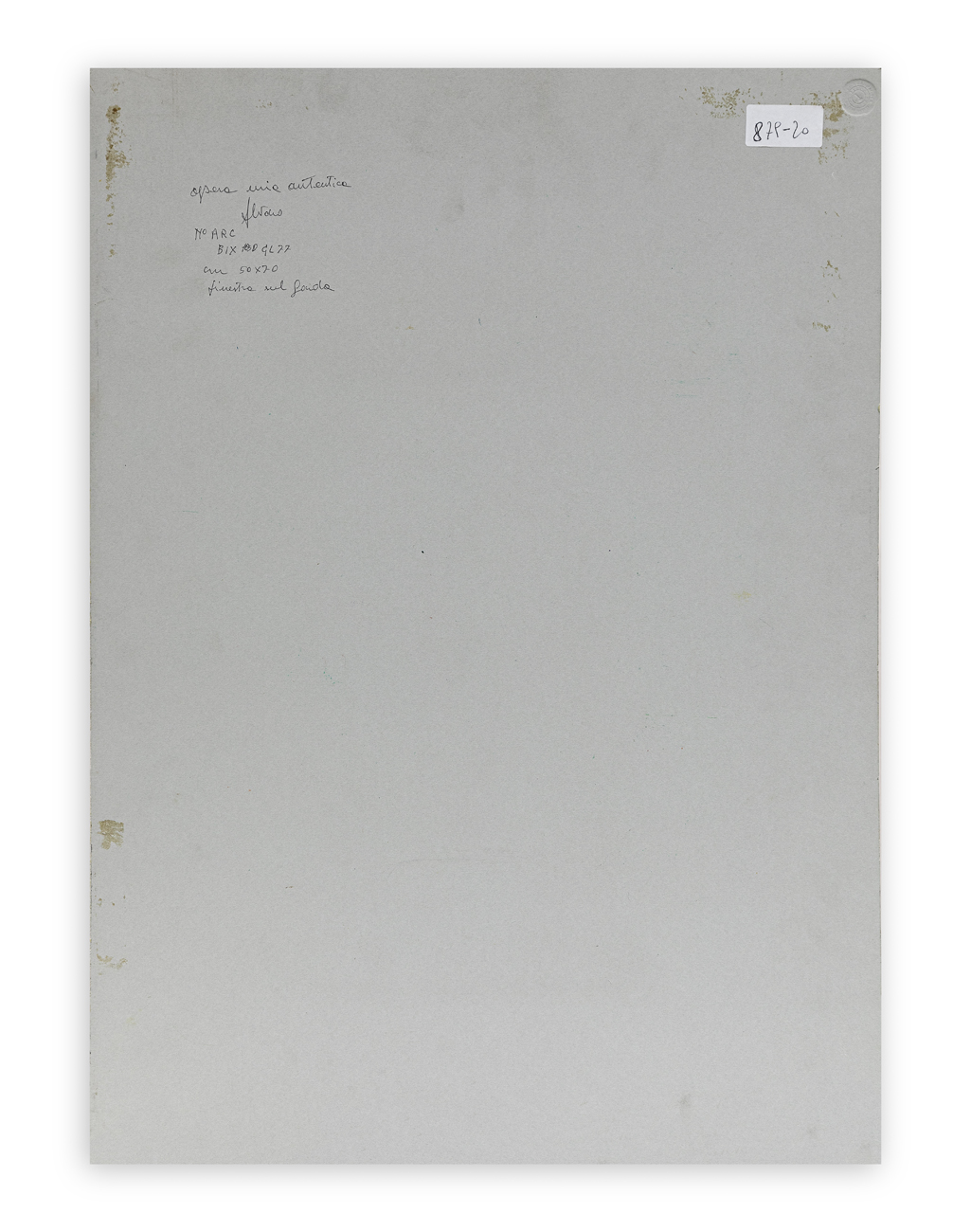 Dichiarazione di autenticità, numero di archiviazione, firma e misure al retro