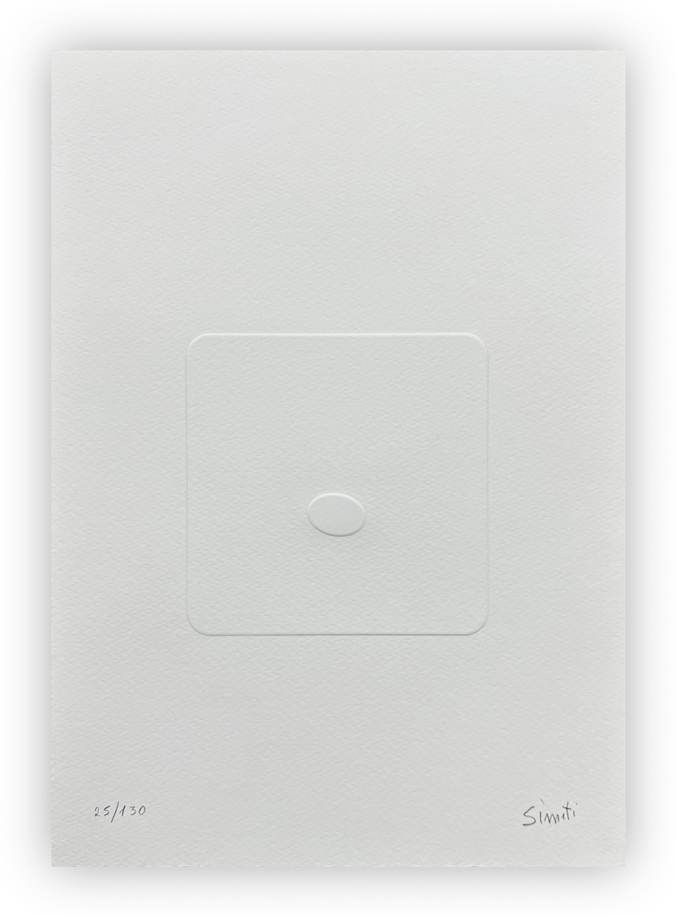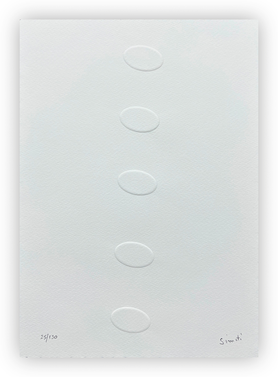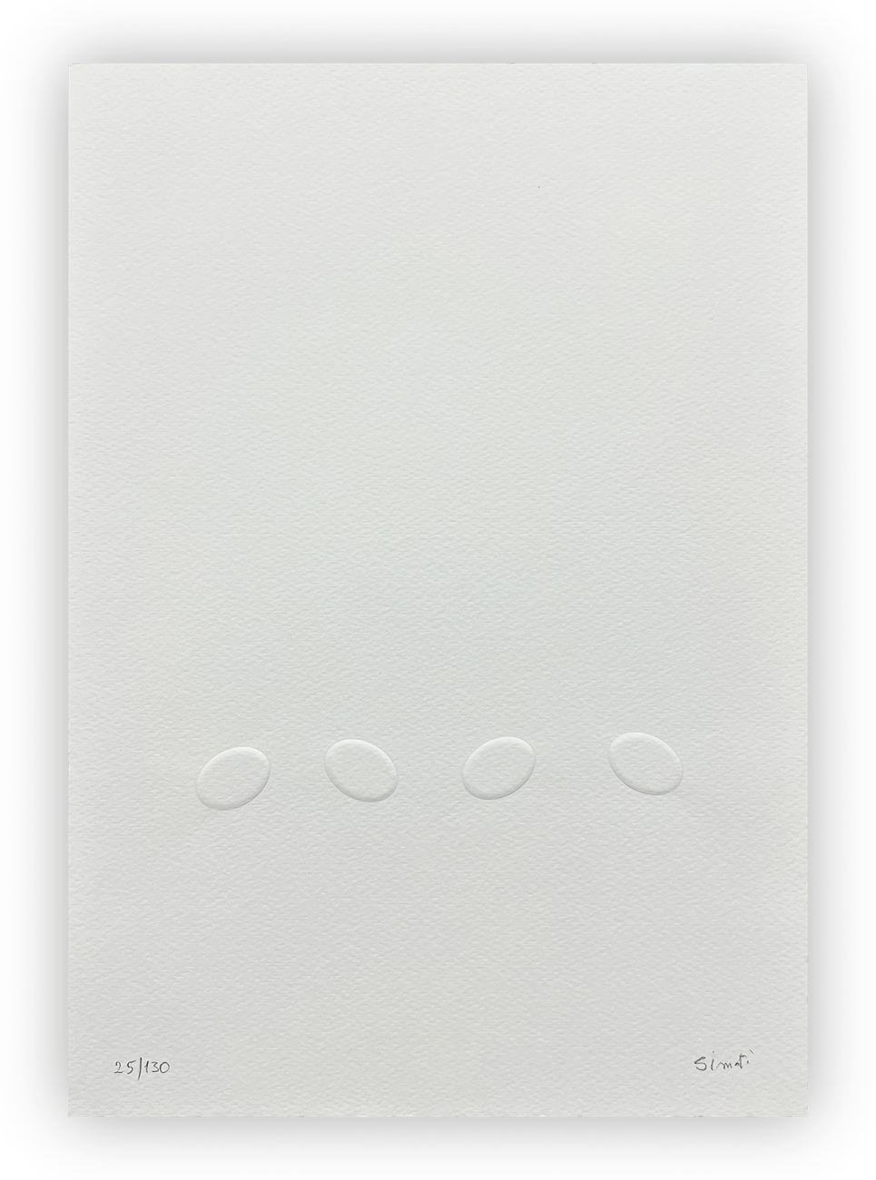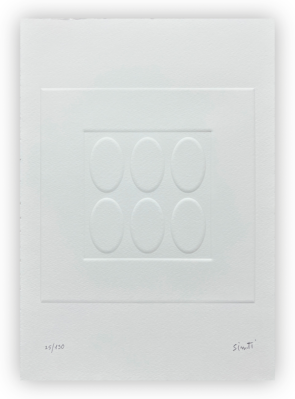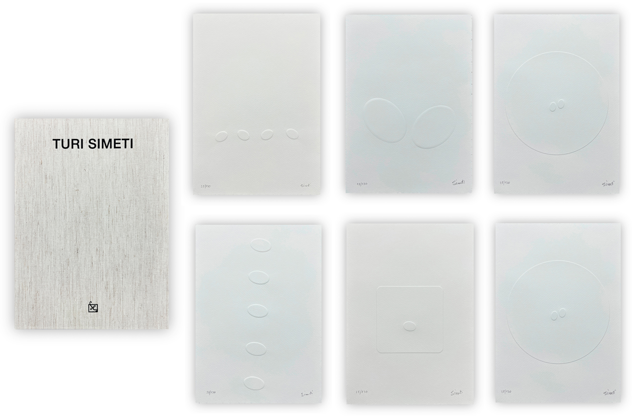 Edizione d'arte recante prefazione di Francesco Tedeschi e 6 lavori sciolti, in rilievo, di Turi Simeti, ciascuno recante firma e numerazione (Esemplari 25/130) a matita all'interno