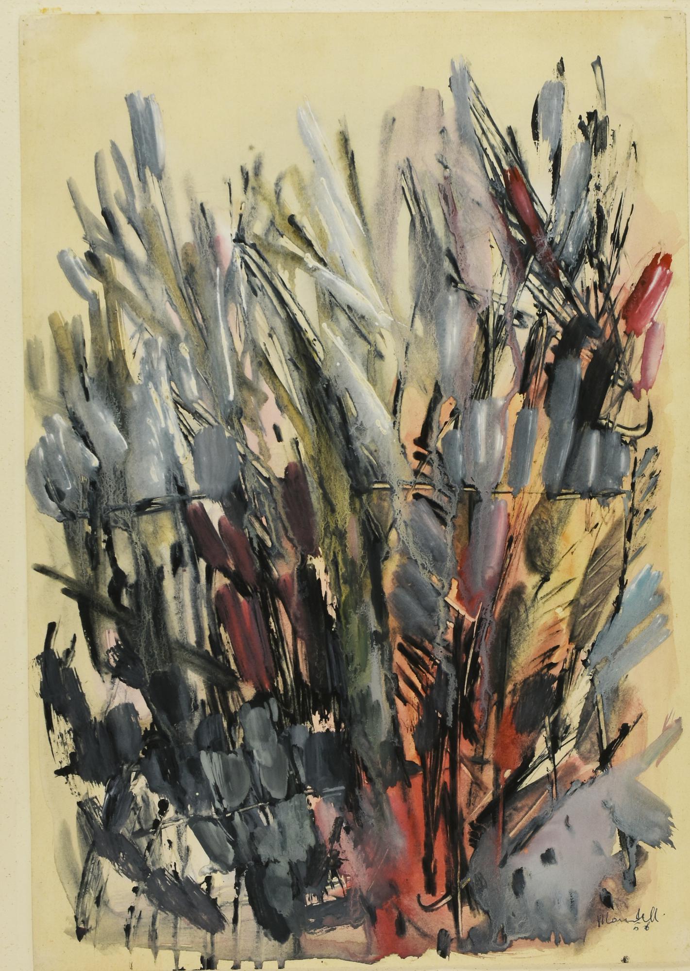 Pompilio Mandelli (1912 - 2006) FIORI, 1956 tecnica mista su carta, cm 49x35...
