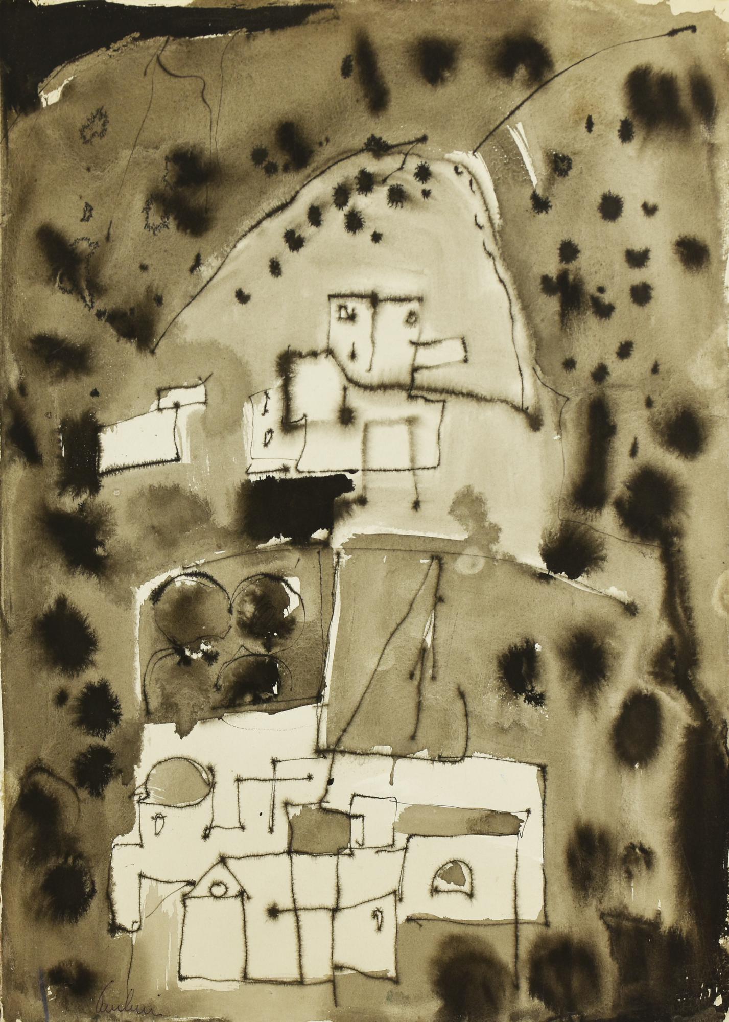 Lotto 132 | Enrico Paulucci (1901 - 1999) CASE BIANCHE, 1958 china su cartoncino, cm...