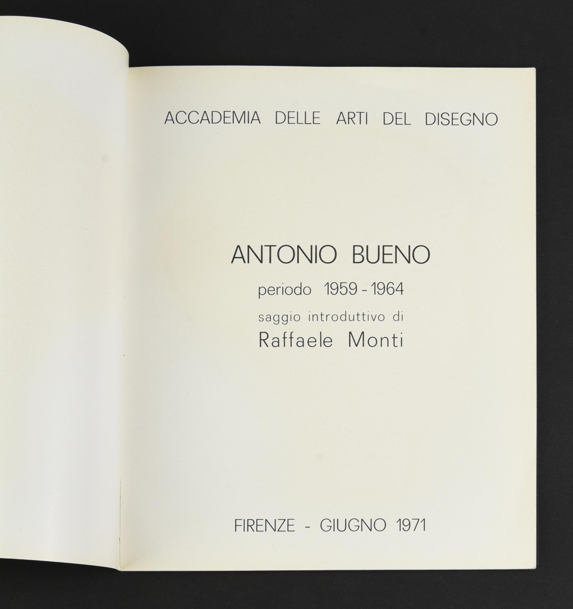 Catalogo della mostra ''Antonio Bueno. Periodo 1959-1964'' tenutasi nel giugno 1971 presso l'Accademia delle Arti del Disegno, Firenze