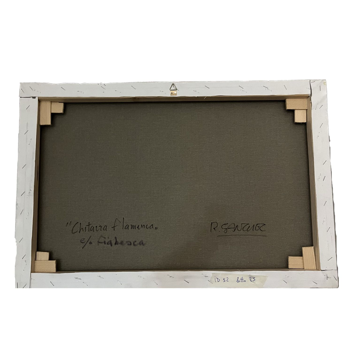 Dipinto acrilico su tela, raffigurante Chitarra flamenca.