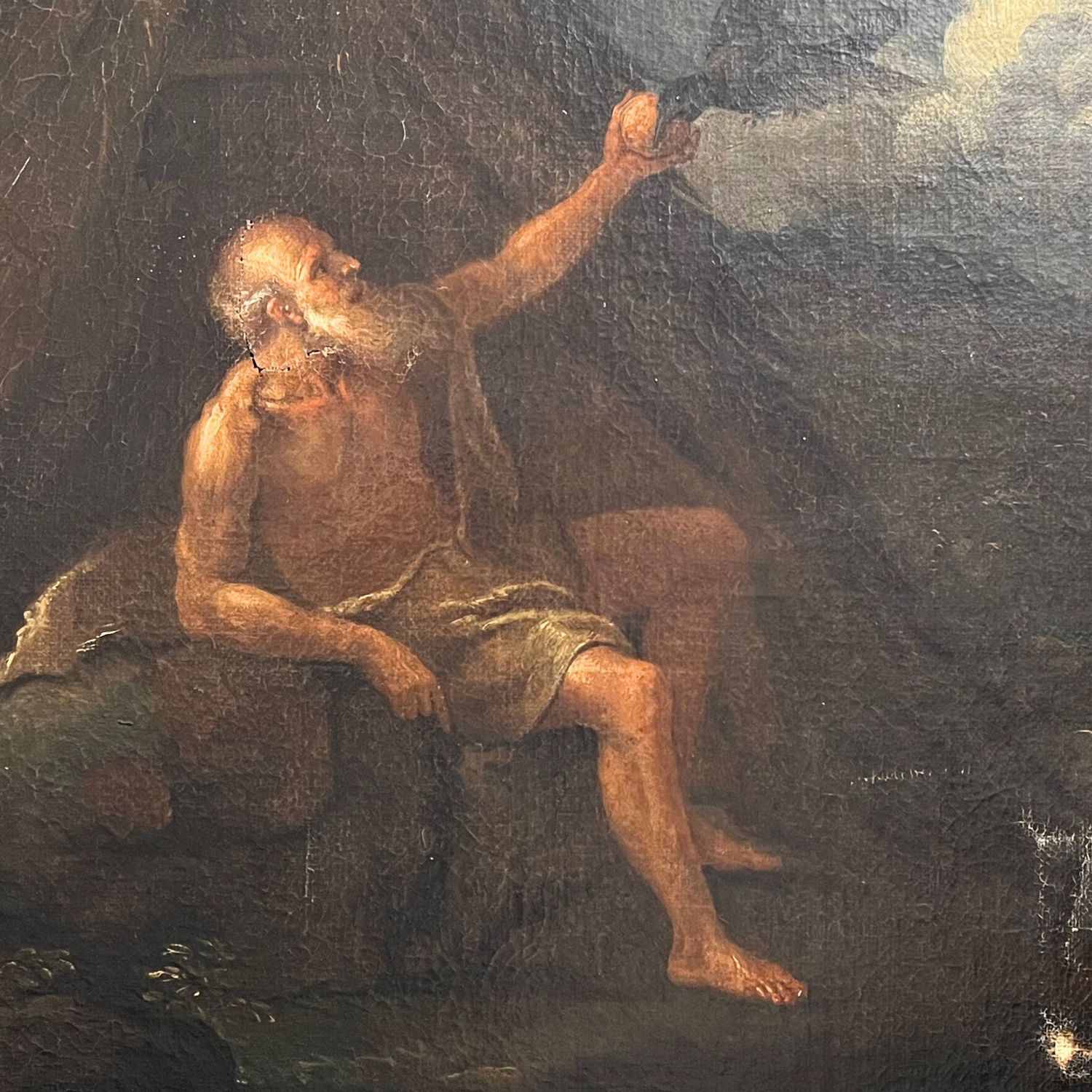 Dipinto di ampia spazialità, nonostante le dimensioni contenute, sviluppato in orizzontale in cui l’elemento religioso non è il solo protagonista; la natura rappresentata in primo piano, con un gioco do luci e di ombre molto netti, colpisce per la precisione e il realismo con cui è stato rappresentata. La scena rappresenta un episodio della vita di San Paolo di Tebe, considerato primo eremita della storia della religione. Paolo di Tebe, per sfuggire alle persecuzioni contro i Cristiani, trovò rifugio in una grotta nelle cui vicinanze si trovava una sorgente d'acqua e un albero di palma. Da quest’ ultima traeva le foglie che intrecciava per farne stuoie oltre al suo abito e i datteri con cui si nutrì fino all'età di circa 43 anni, quando un corvo cominciò a portargli ogni giorno un mezzo pane. Il dipinto può essere considerato appartenente alla scuola emiliana di prima metà del XVIII secolo.