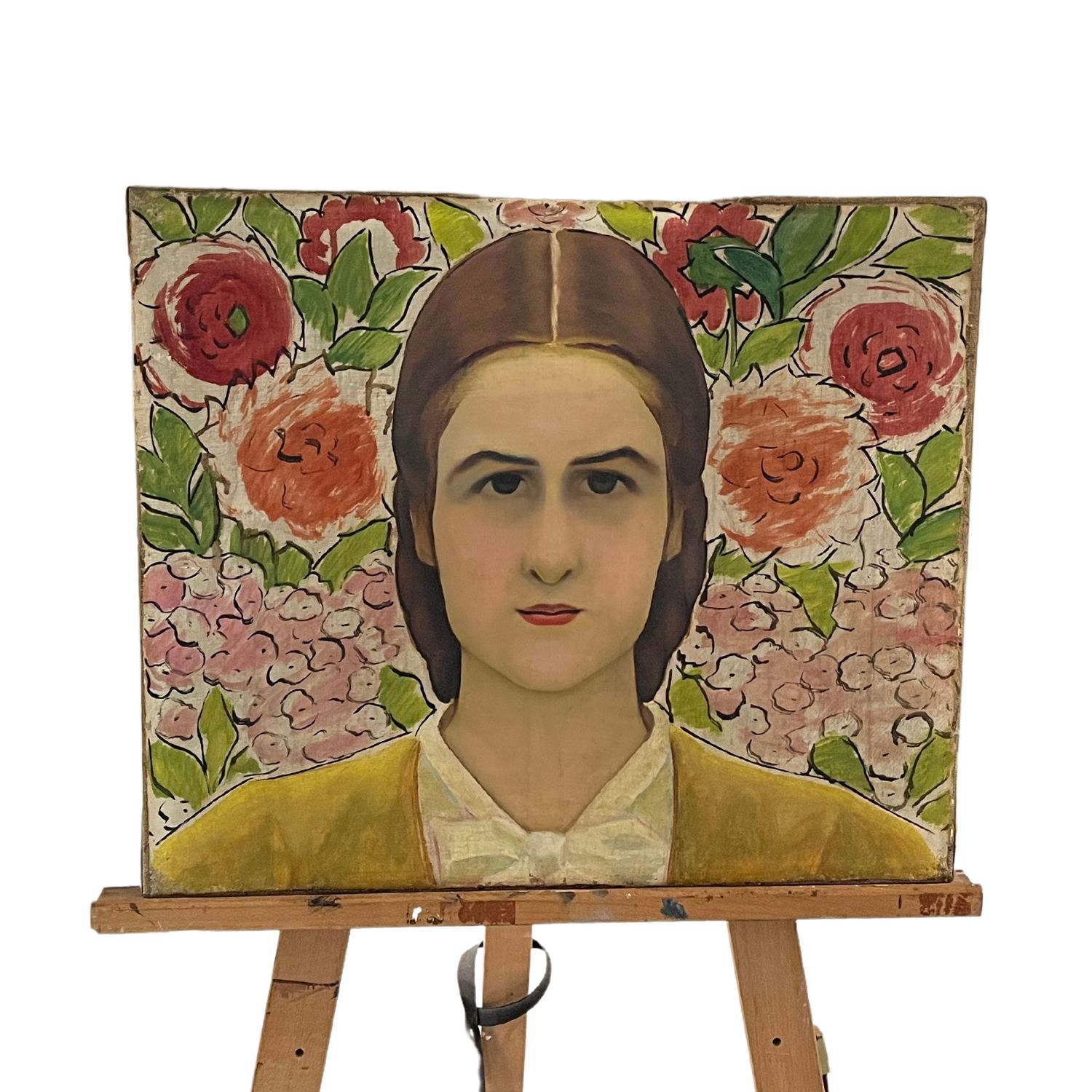 Dipinto olio su tela, periodo XX secolo (1920/1930) raffigurante Volto di giovane donna.