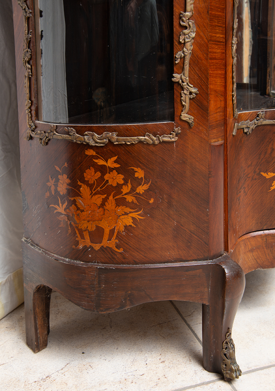 Vetrina Napoleone III Francese in legno esotico pregiato appartenente alla seconda metà del XIX secolo.
