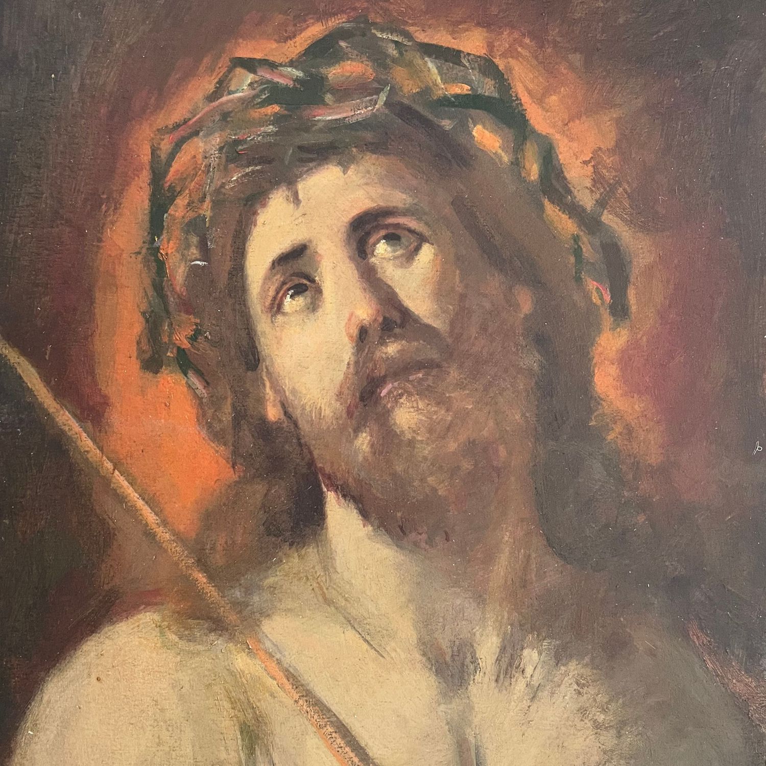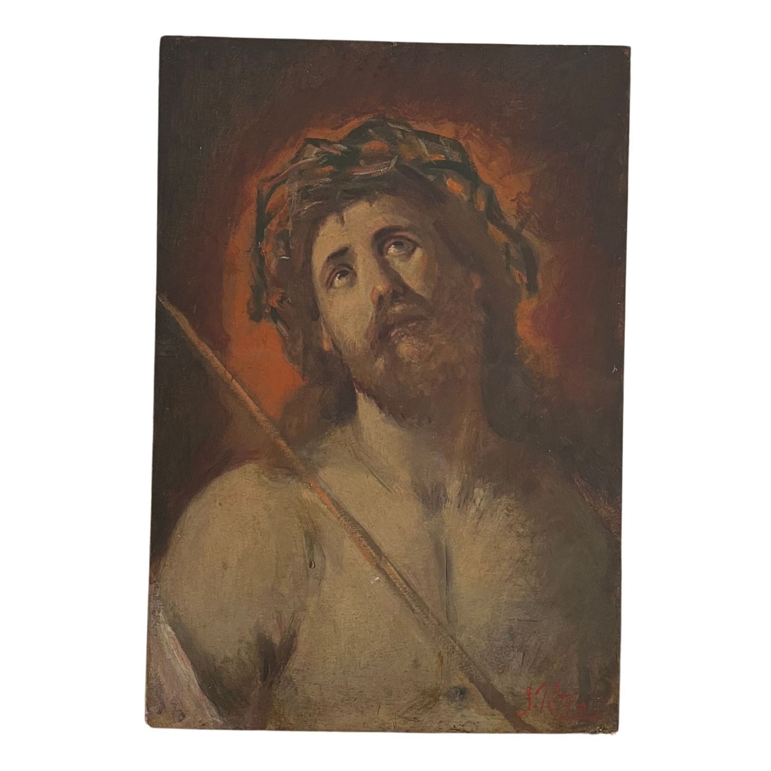 Dipinto olio su pannello, periodo XX secolo scuola Italiana raffigurante Cristo coronato di spine.
