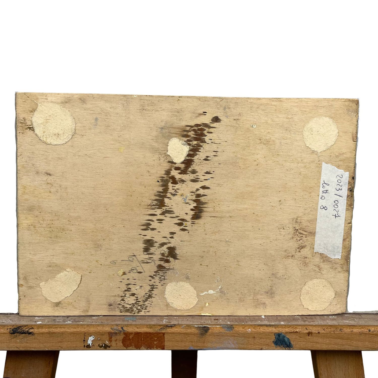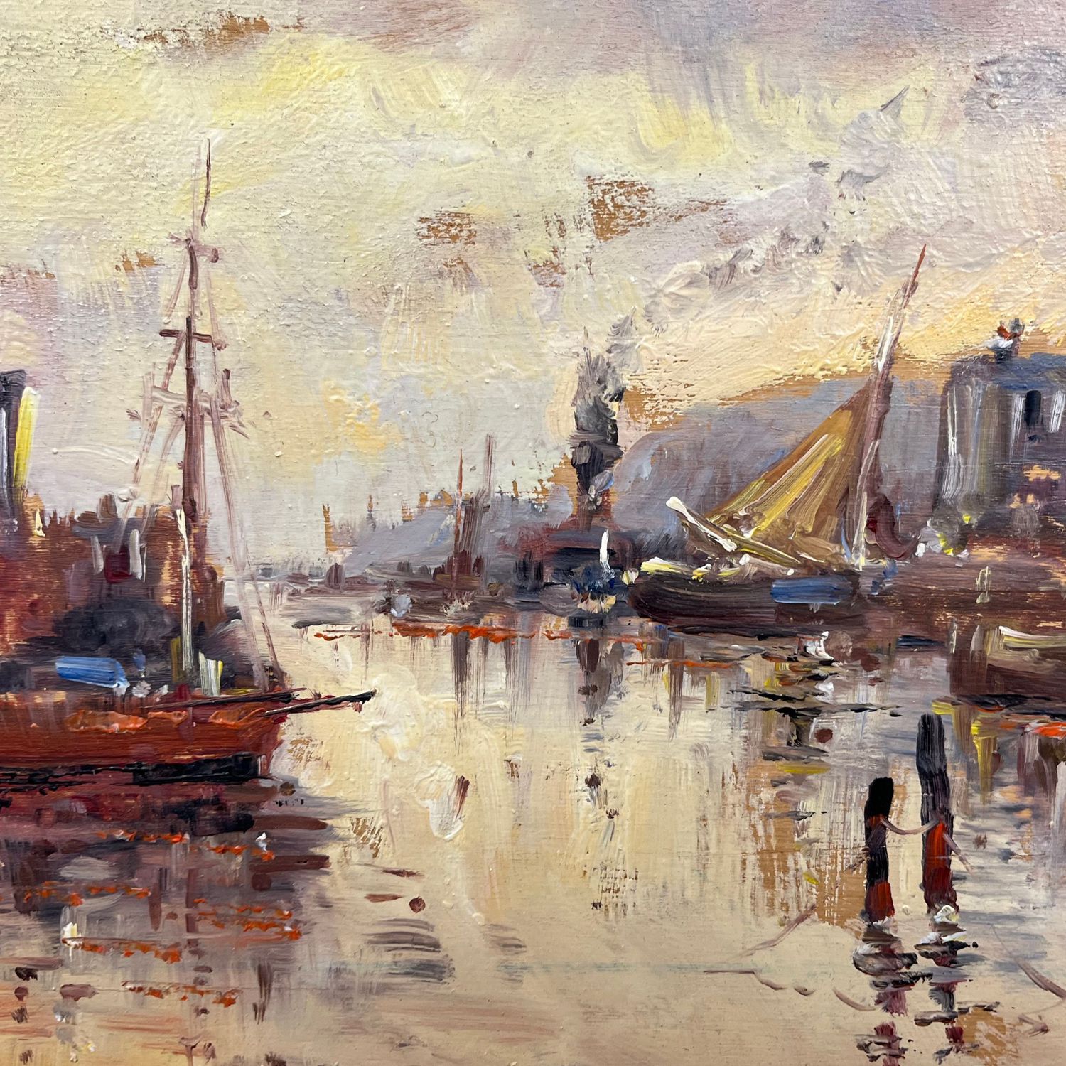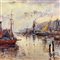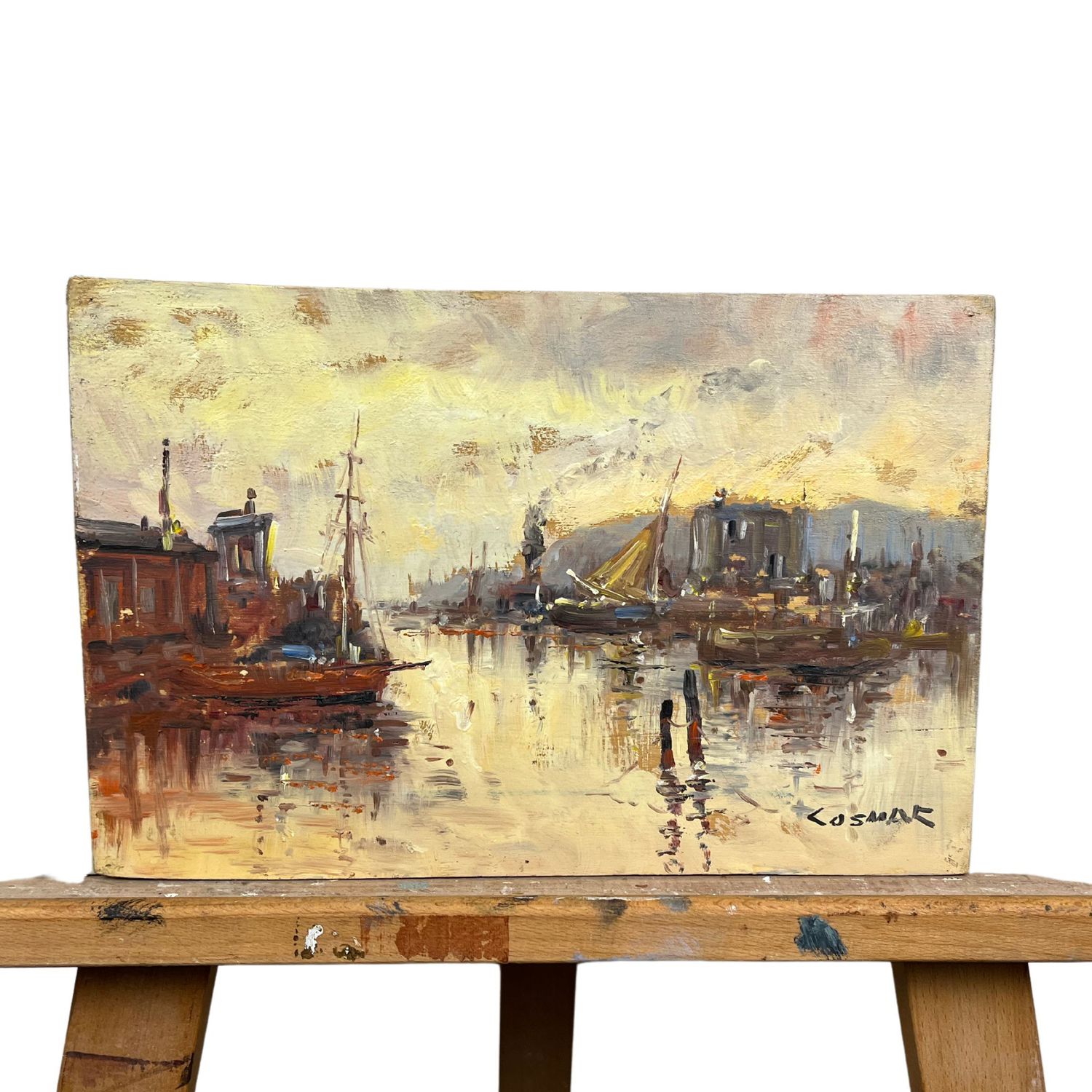 Dipinto olio su tavola periodo XX secolo scuola Italiana raffigurante Porto, luogo non identificato.