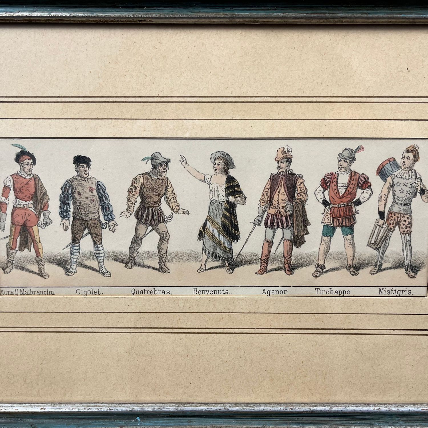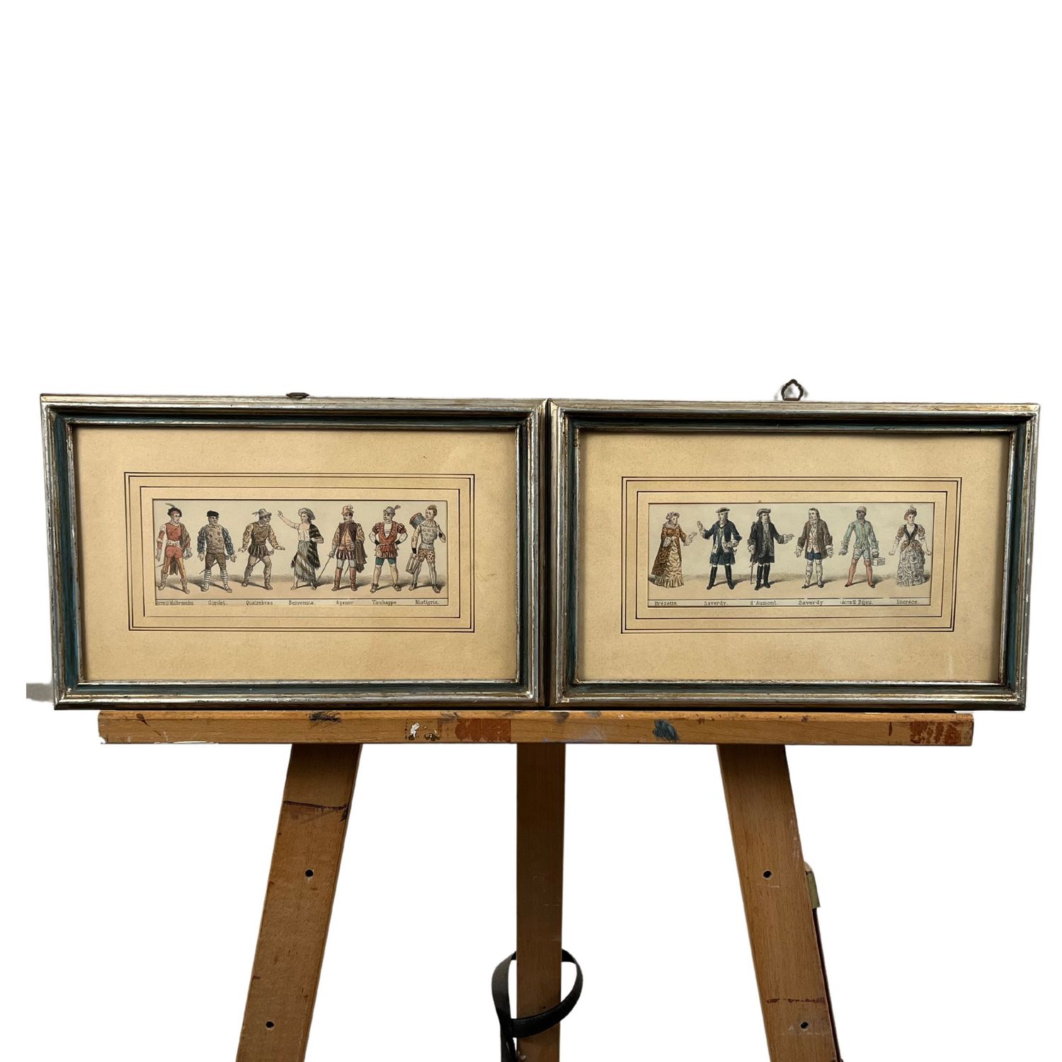 Coppia di incisioni acquerellate periodo XX secolo scuola Europea raffiguranti Personaggi.