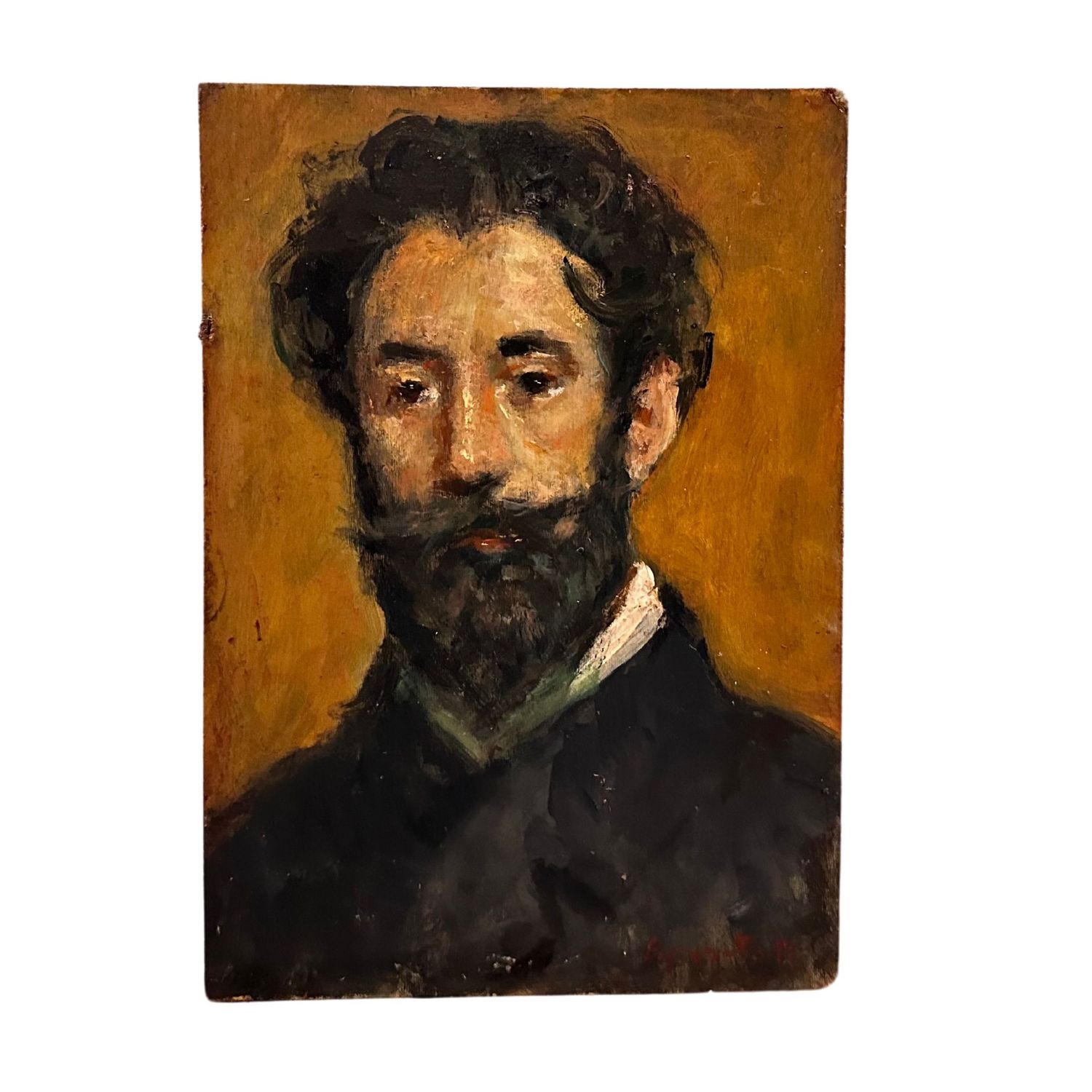 Piccolo dipinto olio su tavoletta periodo XX secolo scuola Italiana, raffigurante Ritratto di uomo con barba.