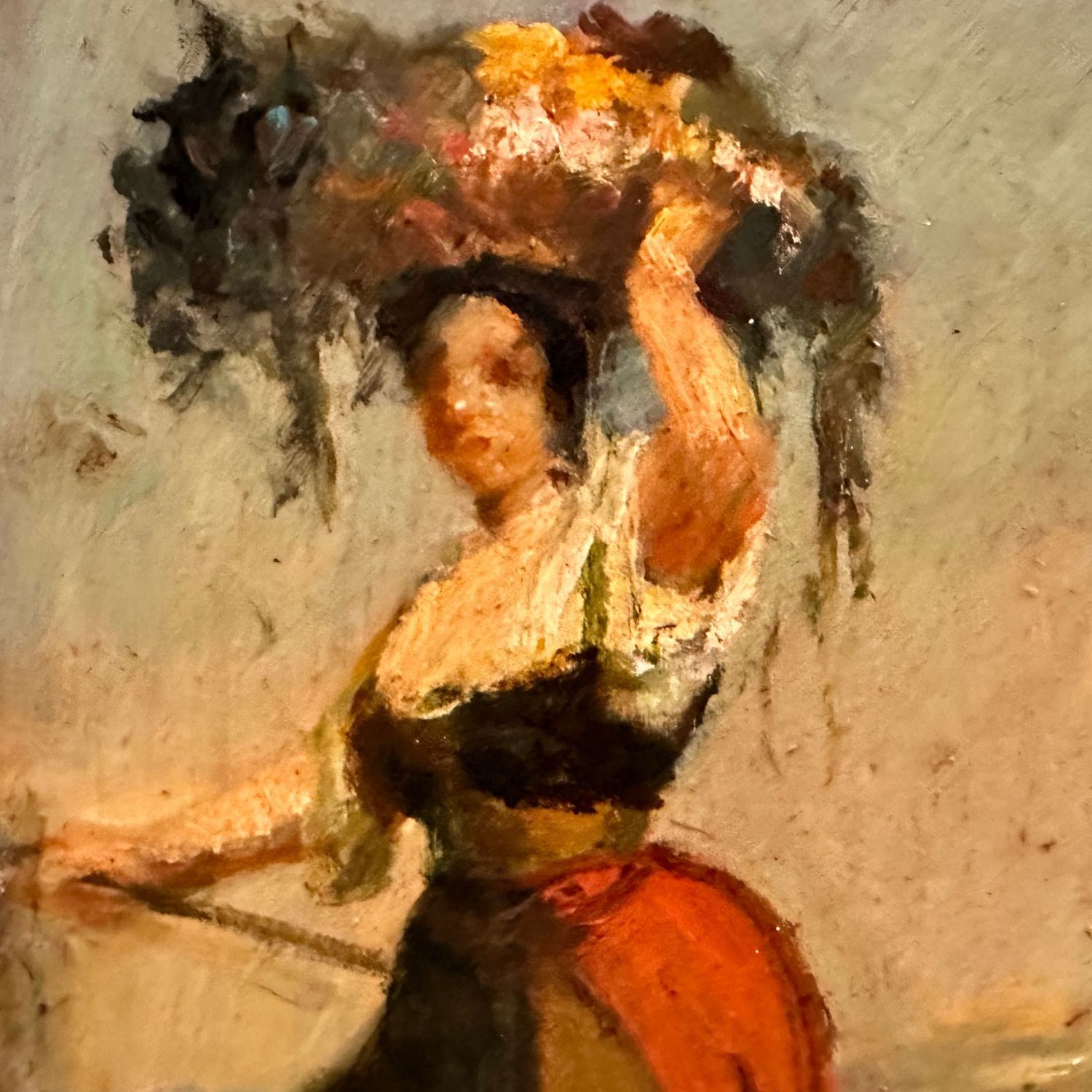 Piccolo dipinto olio su tavoletta periodo XX secolo scuola Italiana raffigurante Donna popolana.
