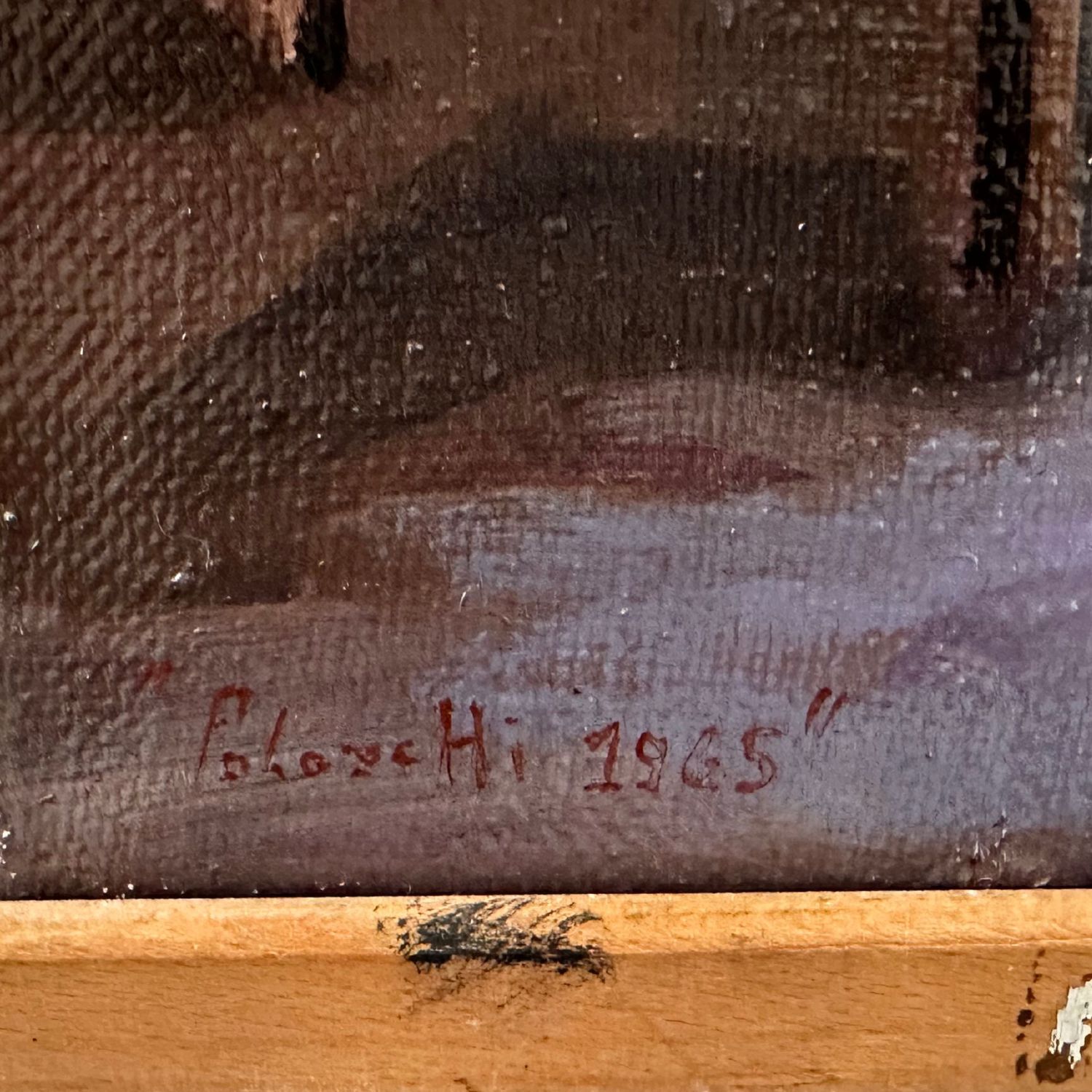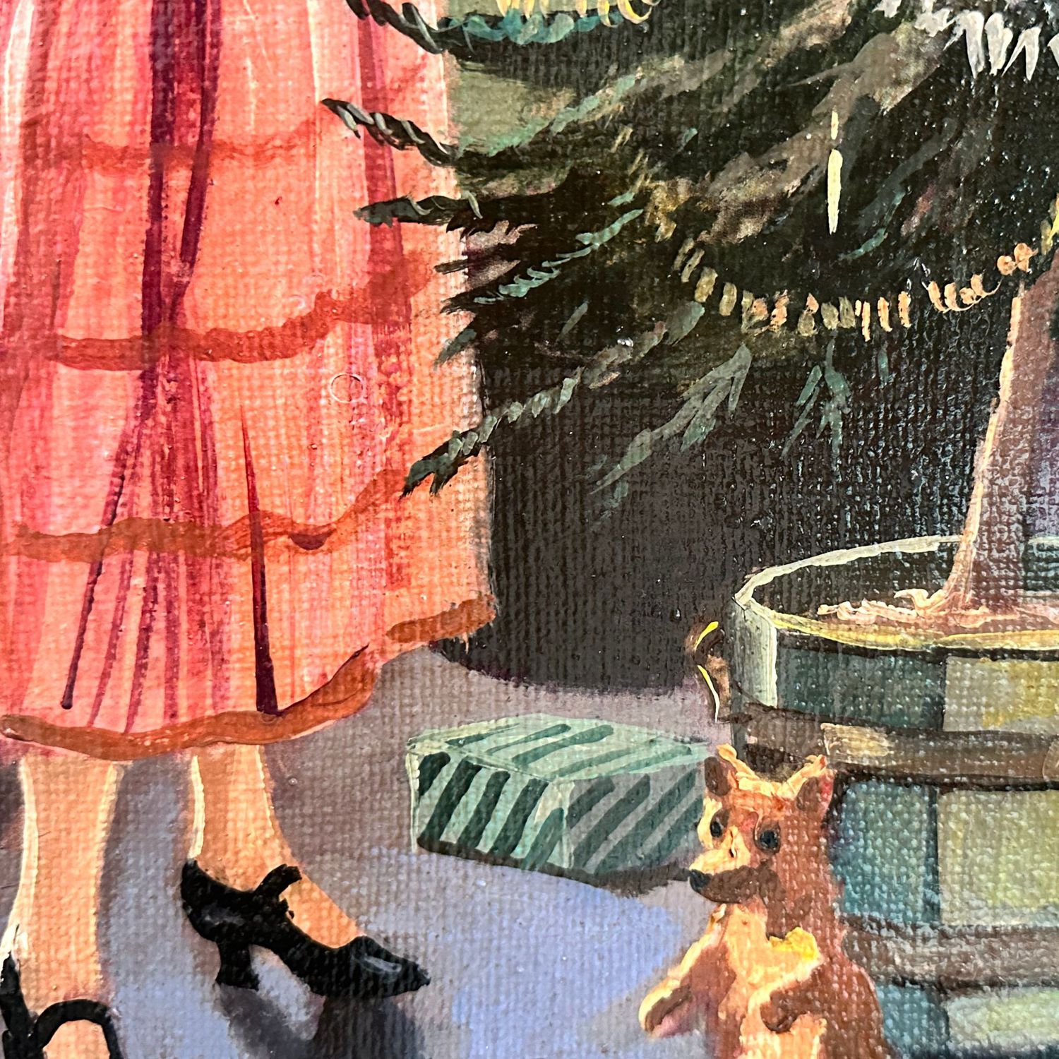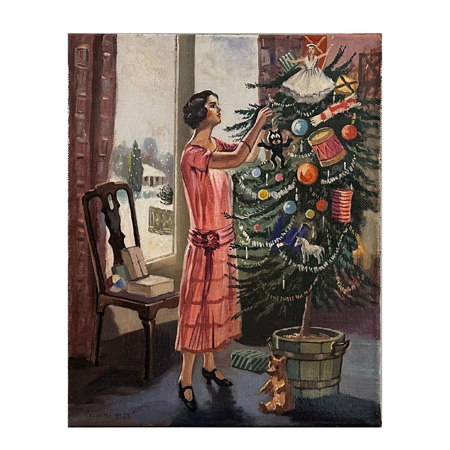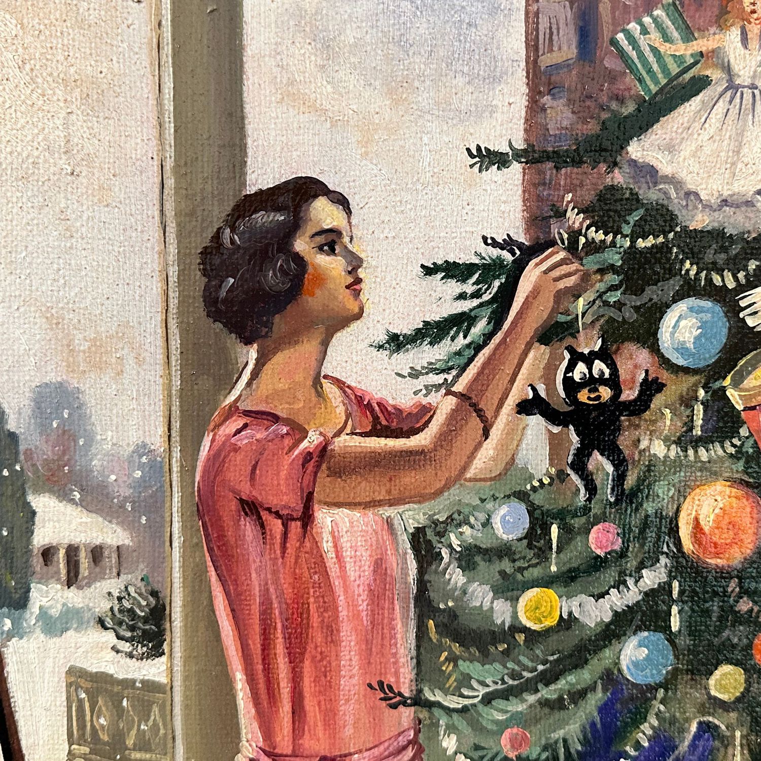 Dipinto olio su tela scuola Europea periodo 1965 raffigurante Le decorazioni natalizie.