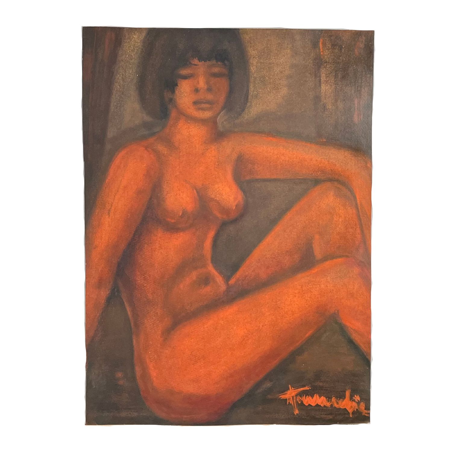 Dipinto olio su Cartoncino raffigurante nudo di donna.