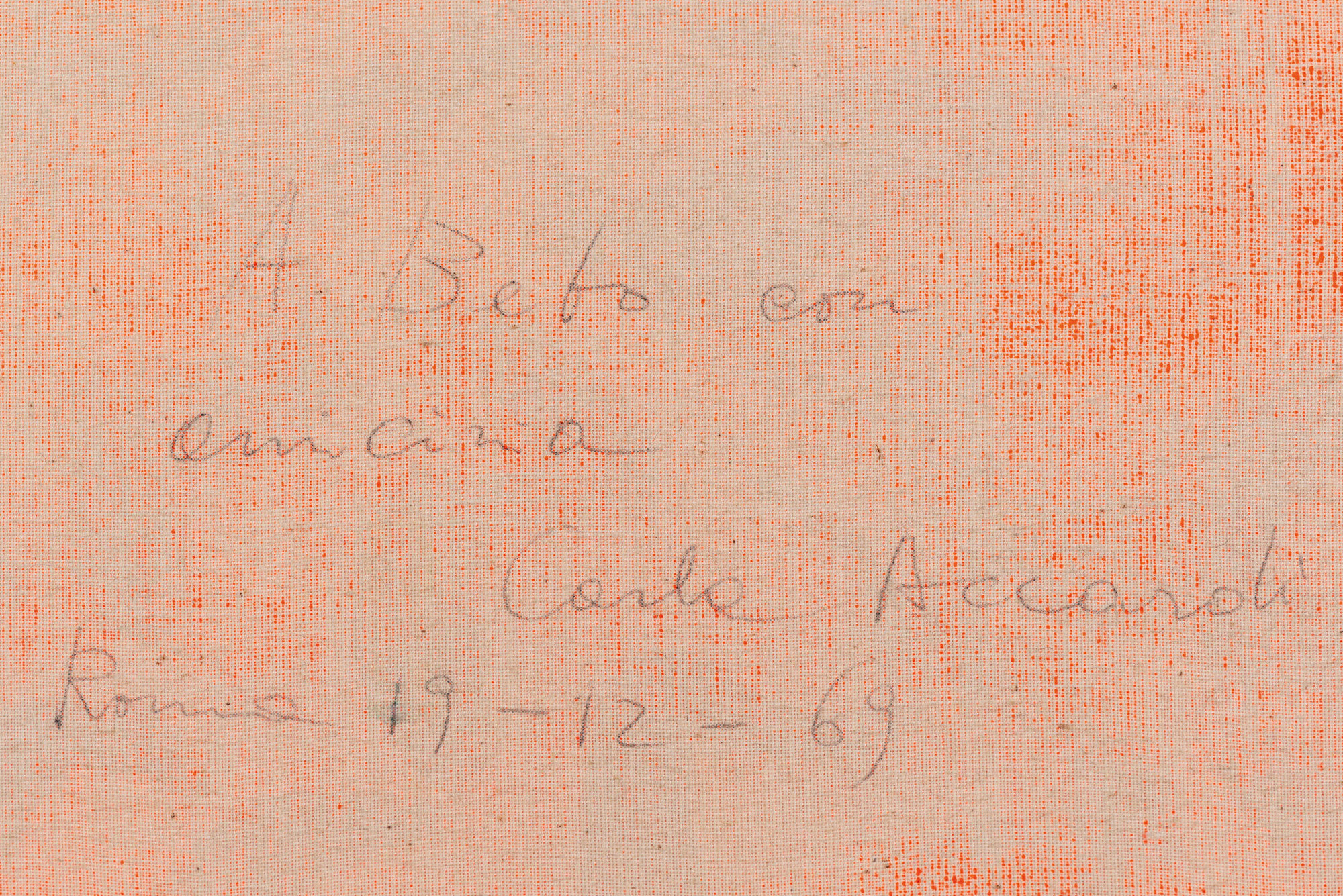 Firmato in basso a sinistra; firmato, datato e dedicato sul retro