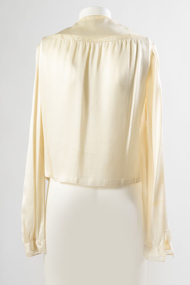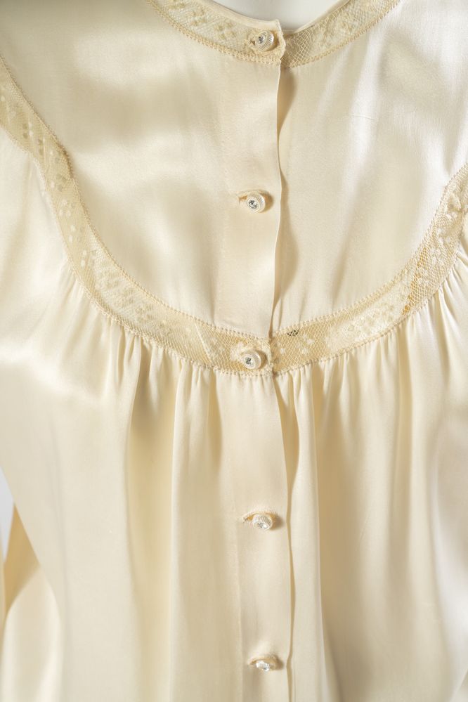 Camicia in raso di seta avorio con inserti in pizzo. Anni '40. Taglia 40.