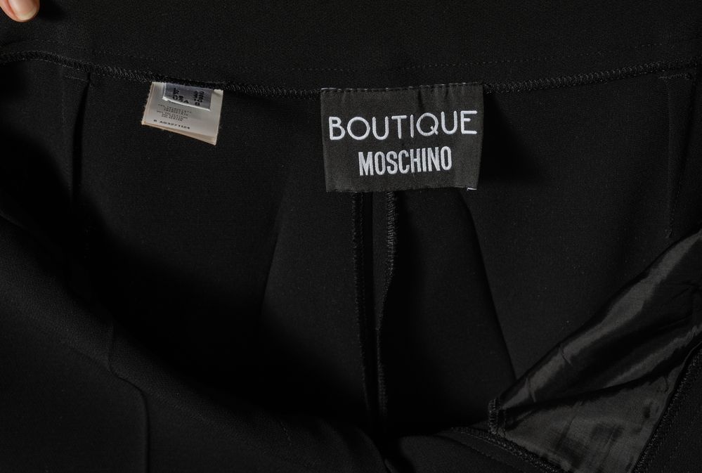 MOSCHINO BOTIQUE Pantaloni a sigaretta in triacetato nero. Taglia riportata: IT 42. Composizione 70% triacetato; 30% polyester. Recano marchio Botique Moschino.