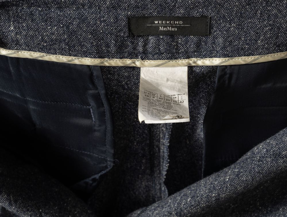 MAX MARA WEEKEND Pantaloni a sigaretti in lana melangiati sui toni del grigio. Taglia riportata: IT 42. Composizione 71% lana vergine, 17% poliammide, 11% seta, 01% elastane. Recano marchio MaxMara Weekend.