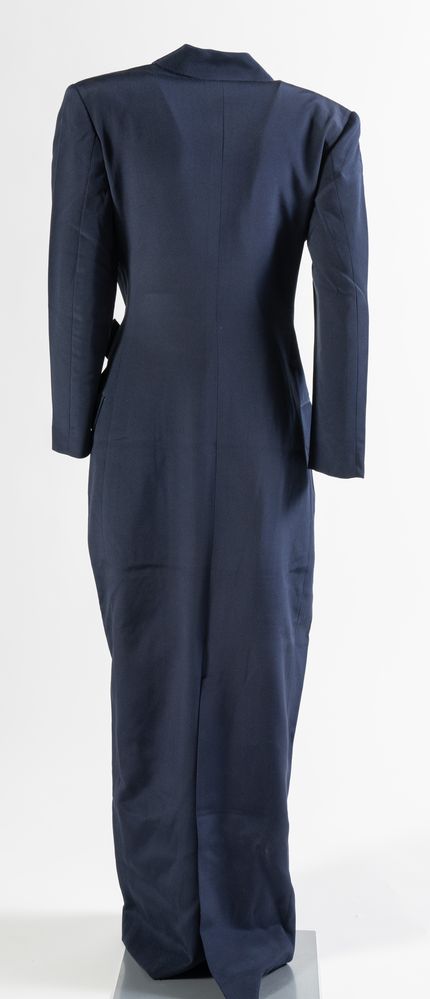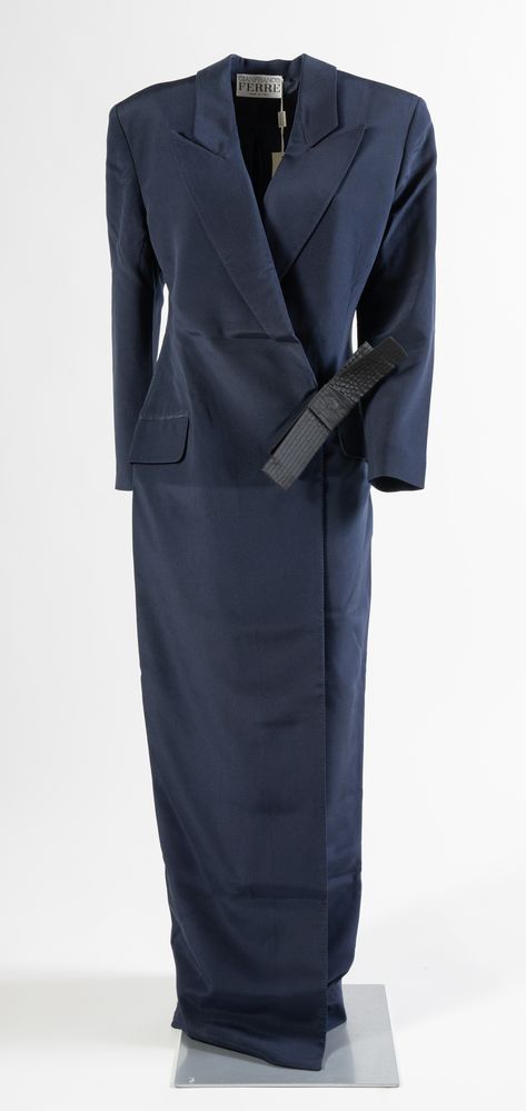 GIANFRANCO FERRE' Abito lungo in seta blu con chiusura a portafoglio e...