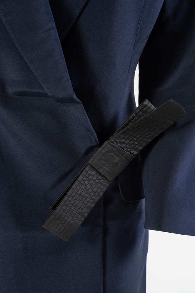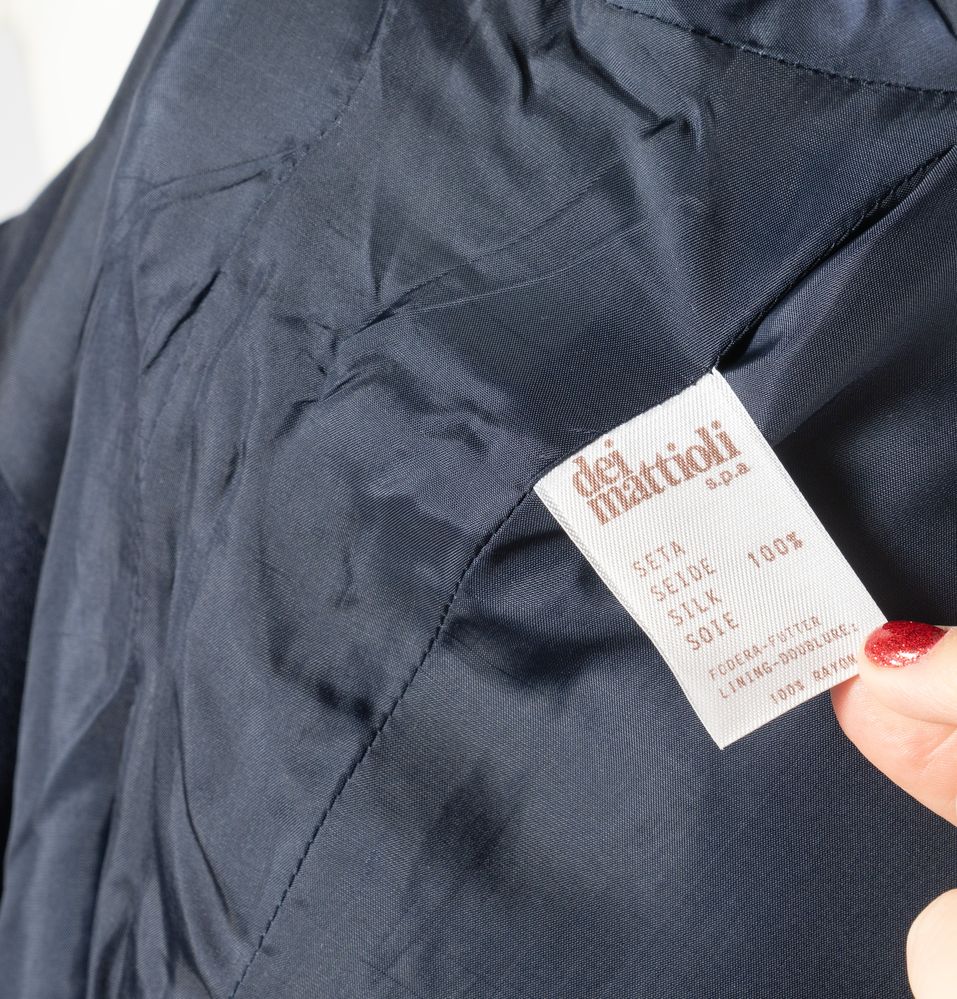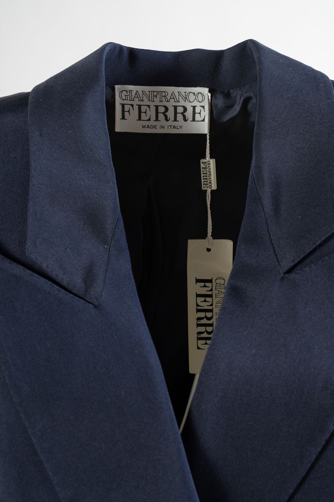 GIANFRANCO FERRE' Abito lungo in seta blu con chiusura a portafoglio e fiocco. Taglia riportata: 46. Composizione esterno 100% seta; fodera 100% rayon. Reca marchio Gianfranco Ferrè Made in Italy. (nuovo)