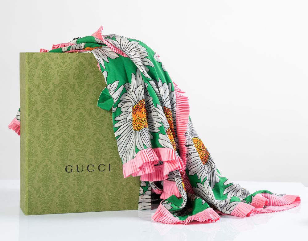 Lotto 69 | GUCCI Rarissimo abito da passerella in seta a fantasia floreale e rouge...