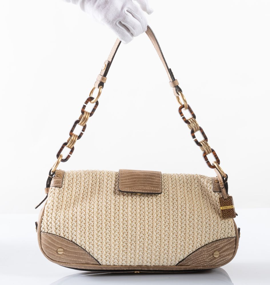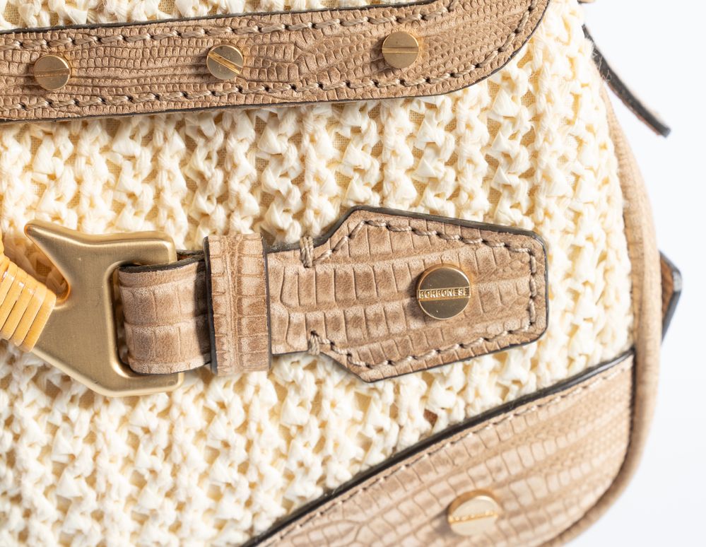 BORBONESE Borsa modello Baguette in rafia, con dettagli in pelle stampata...