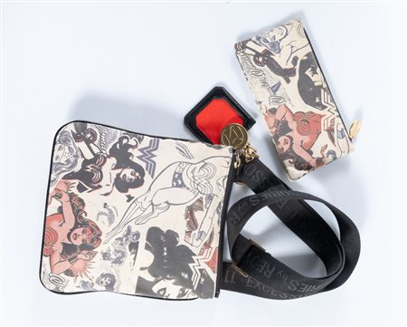 REDWALL Borsello e astuccio interno in tela a tema Wonder Woman. Rifiniture...