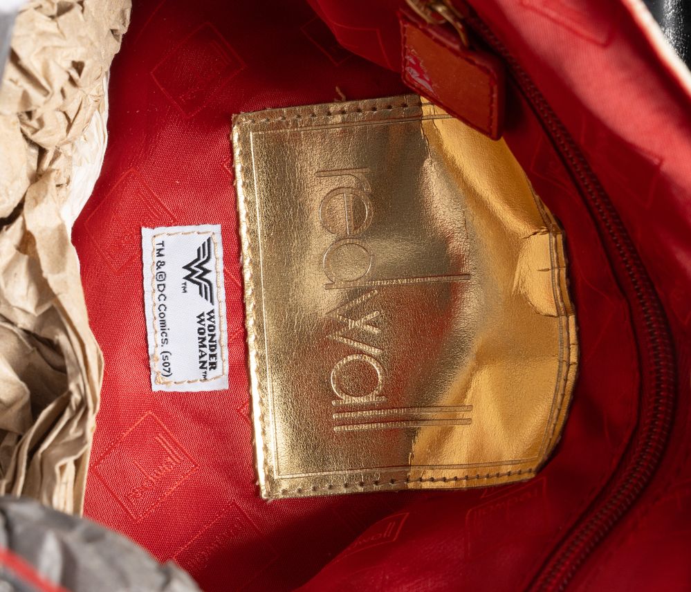 REDWALL Borsa a mano in tela a tema Wonder Woman. Rifiniture in metallo...