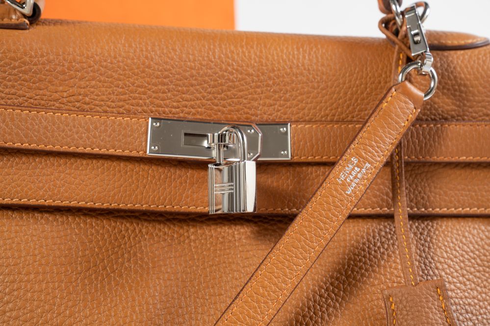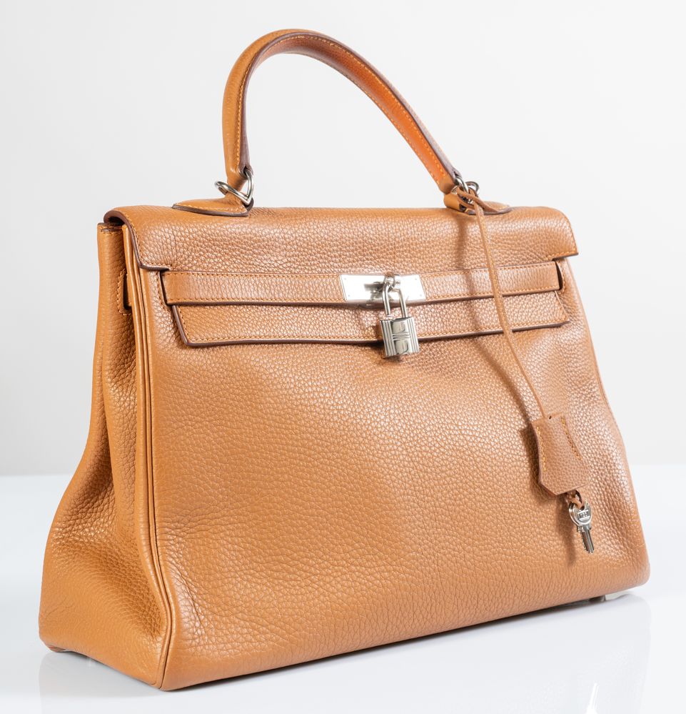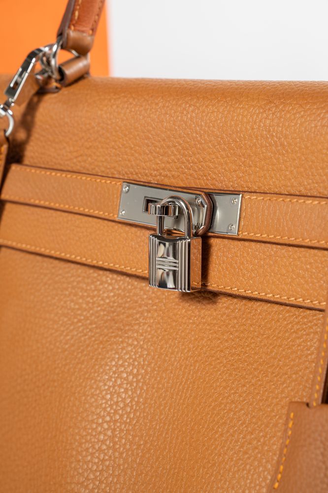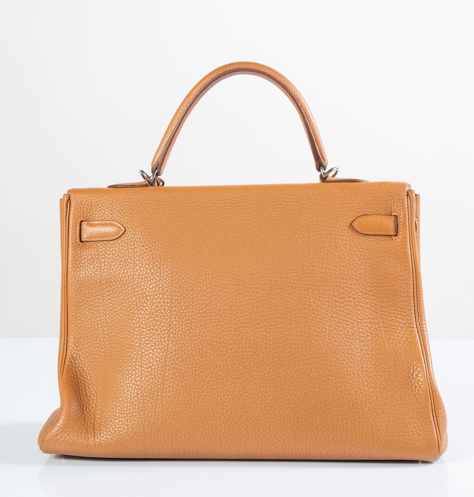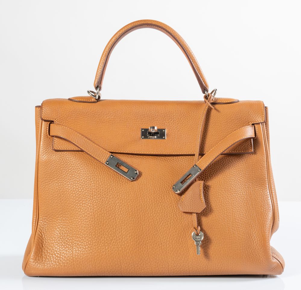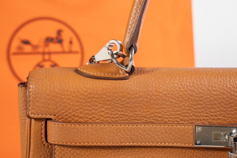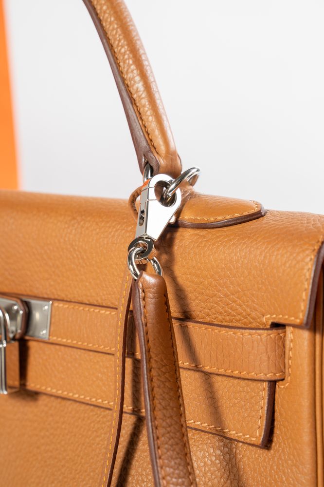 HERMES Borsa a mano modello Kelly 32 bicolore in pelle togo gold. Cuciture a...