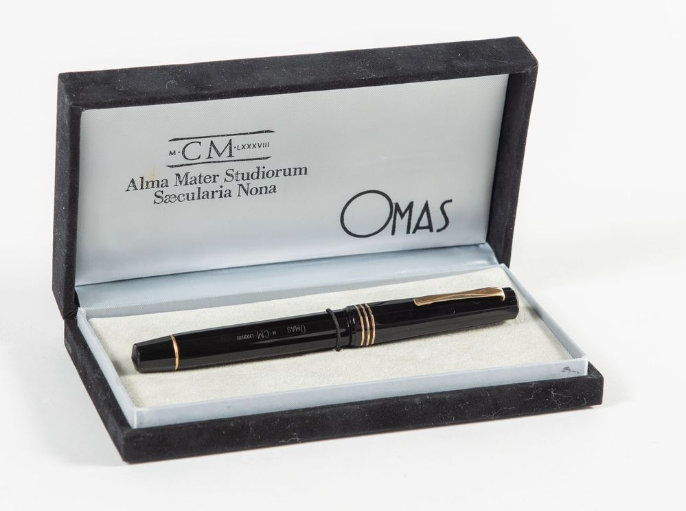 OMAS Penna stilografica modello CMLXXXVIII ANNIVERSARIO 100° UNIVERSITA’ DI BOLOGNA. Anno 1991. Corredata di scatola, controscatola originali e foglietti illustrativi. (Lievi difetti, necessita di revisione)