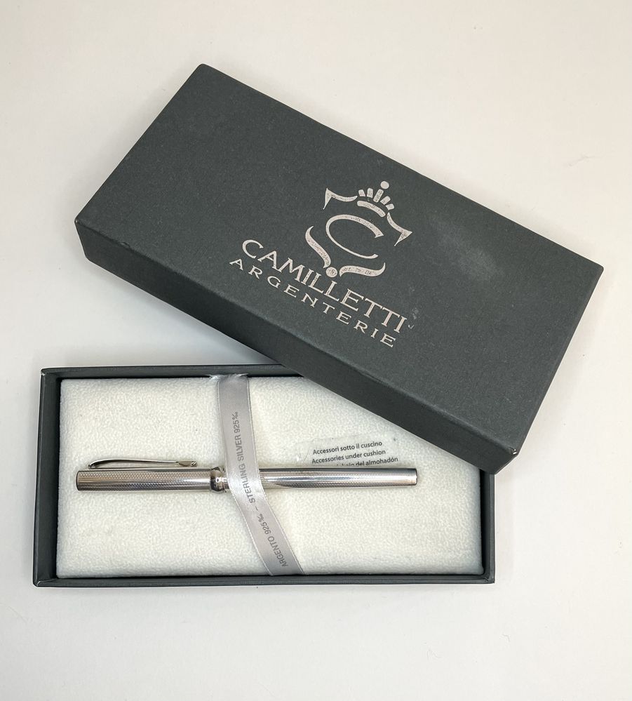 PARKER, CAMILLETTI ARGENTERIE Lotto composto da due penne a sfera. Parker modello IM Silver CT. Camilletti argenterie penna in argento sterling 925. Ciascuna è corredata di scatola originale (Lievi difetti, necessitano di revisione)