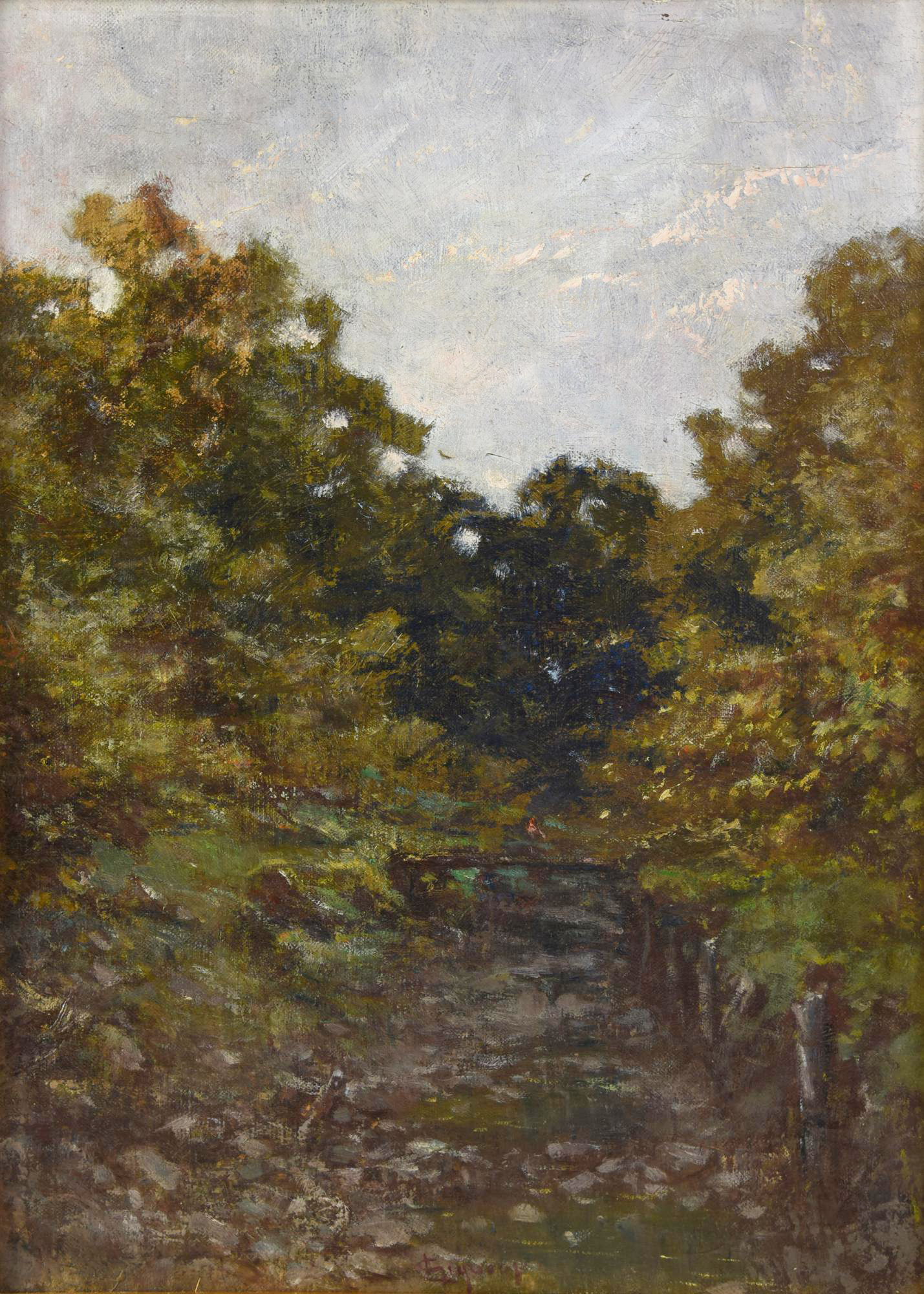 A firma Eugenio Gignous PAESAGGIO olio su cartone telato, cm 44x33 firma