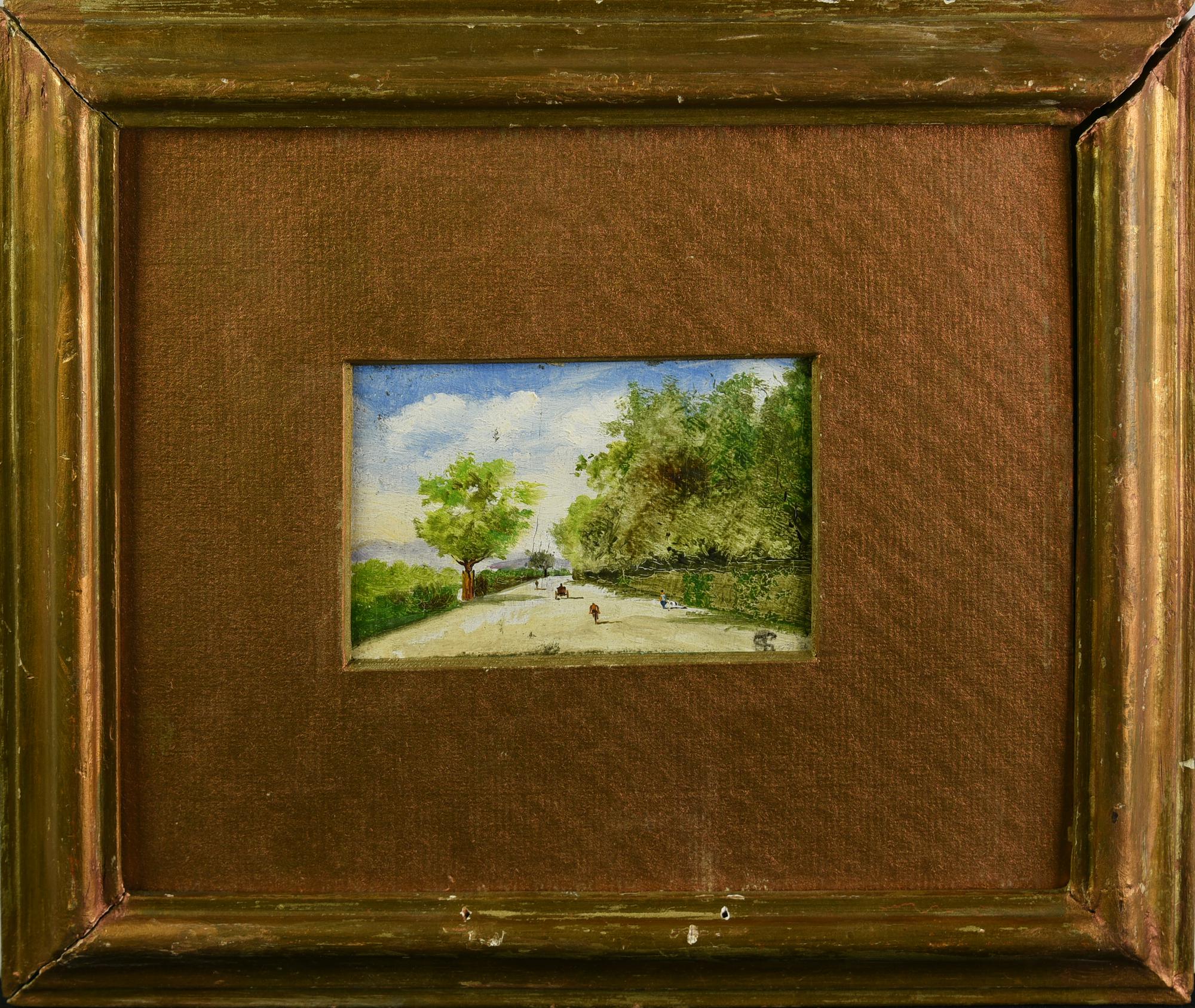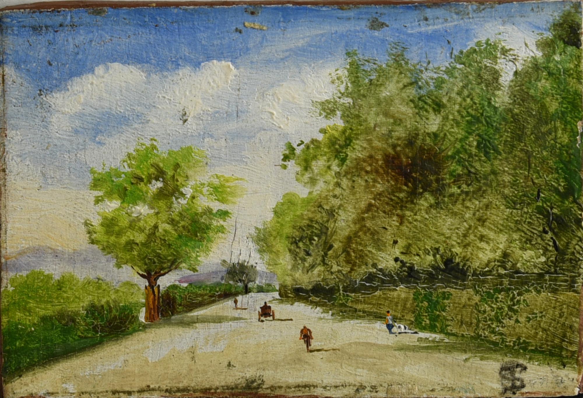 Telemaco Signorini STRADA DI CAMPAGNA olio su tavola, cm 6,5x9,5 sigla
