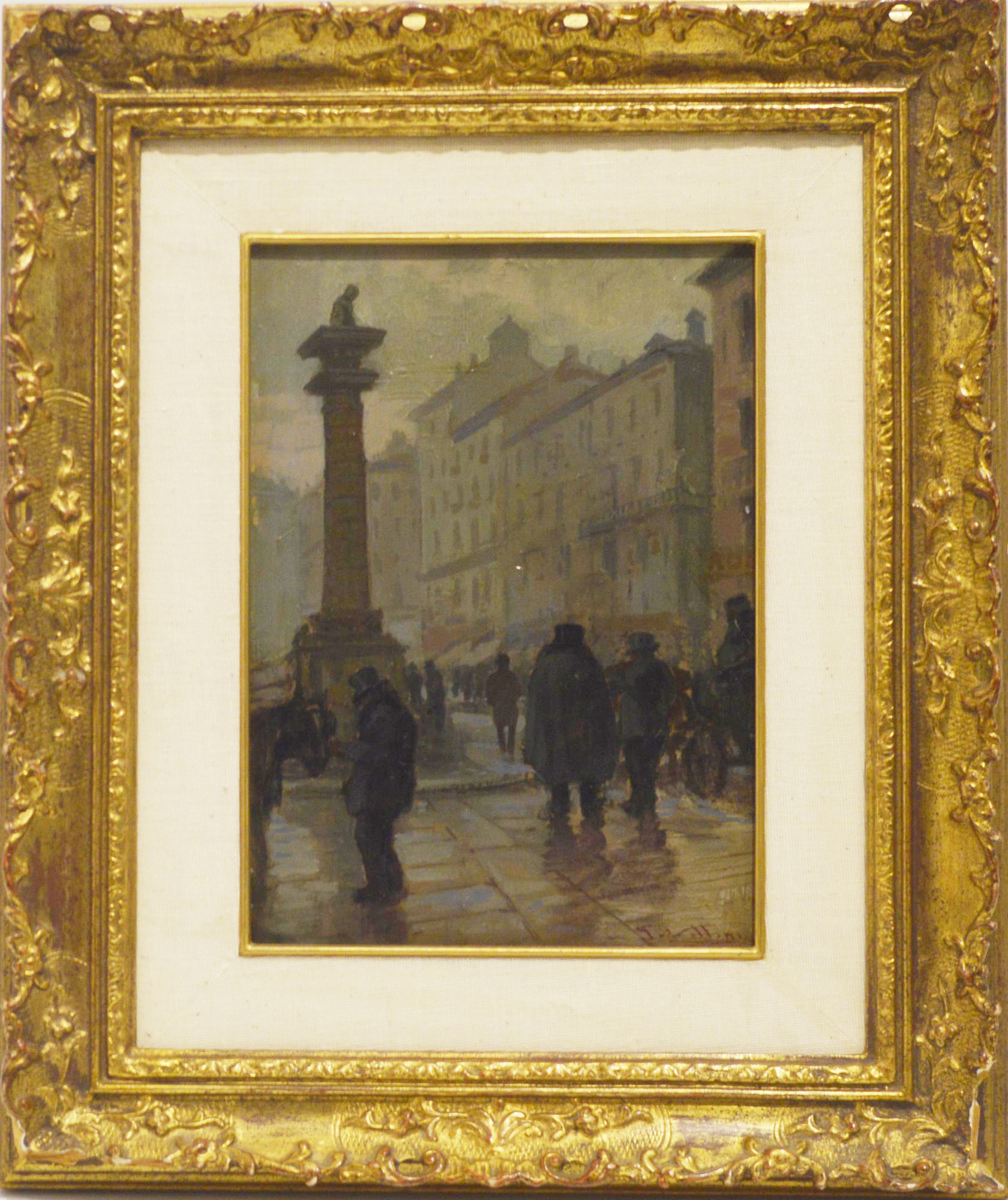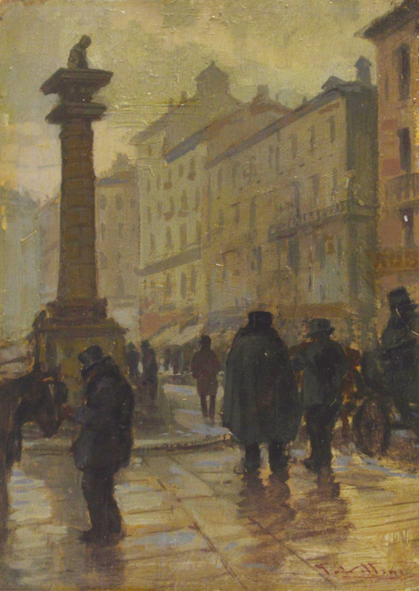 Giulio Vittini PIAZZA SAN BABILA olio su tavola, cm 25x18 firma sul retro:...