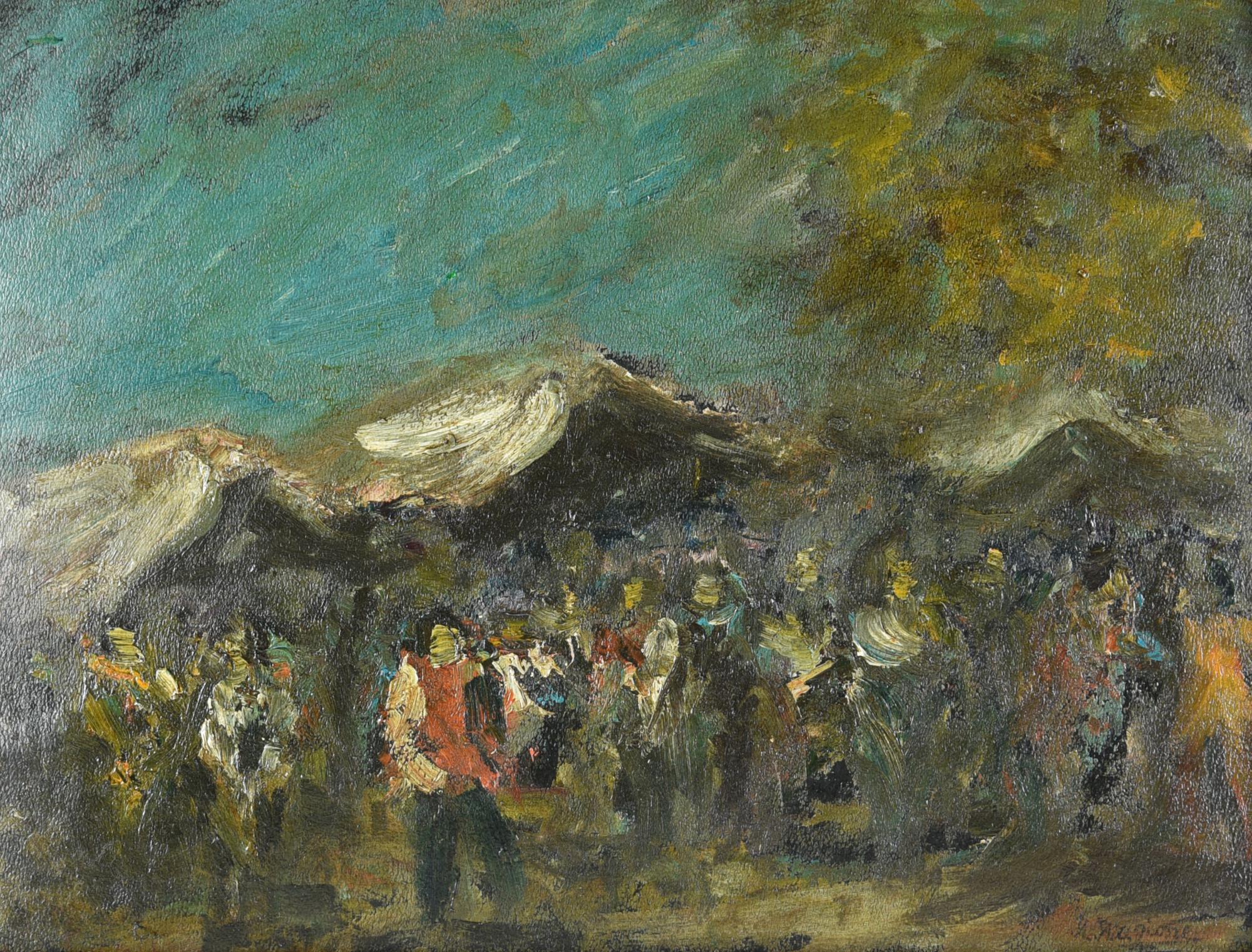 Raffaele Ragione LA FIERA olio su cartone, 25,7X33,7 cm firma sul retro:...
