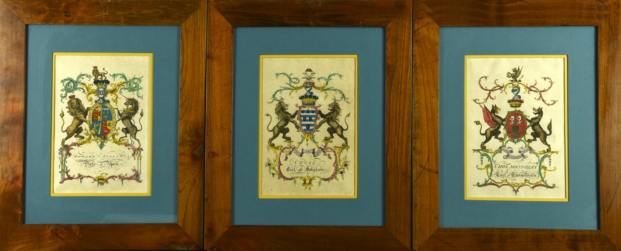 Scuola del XVIII secolo STEMMI ARALDICI DI FAMIGLIE INGLESI stampe a colori...