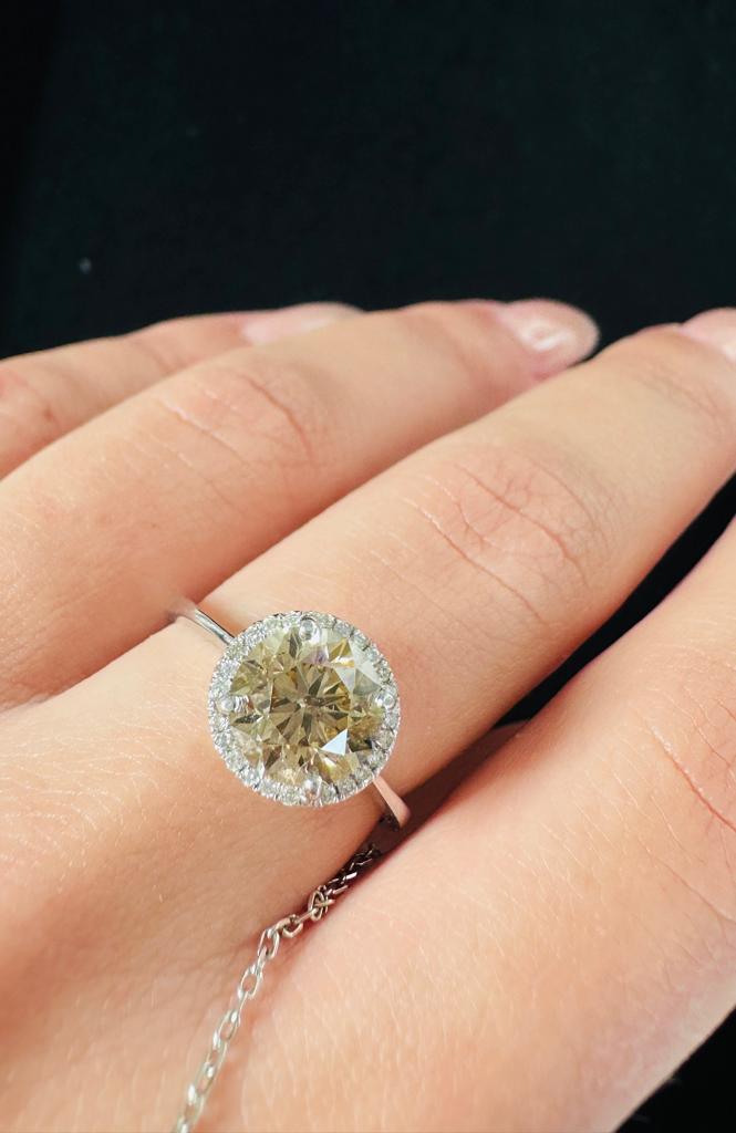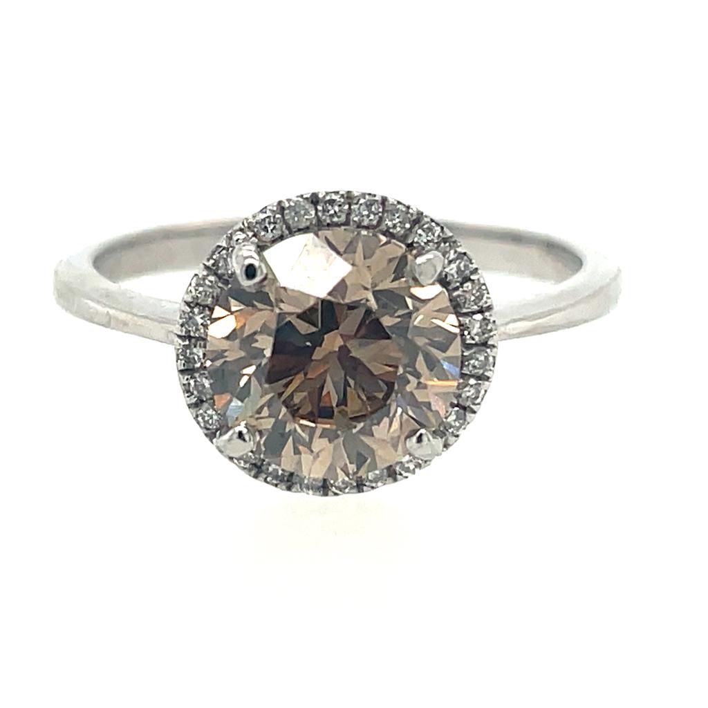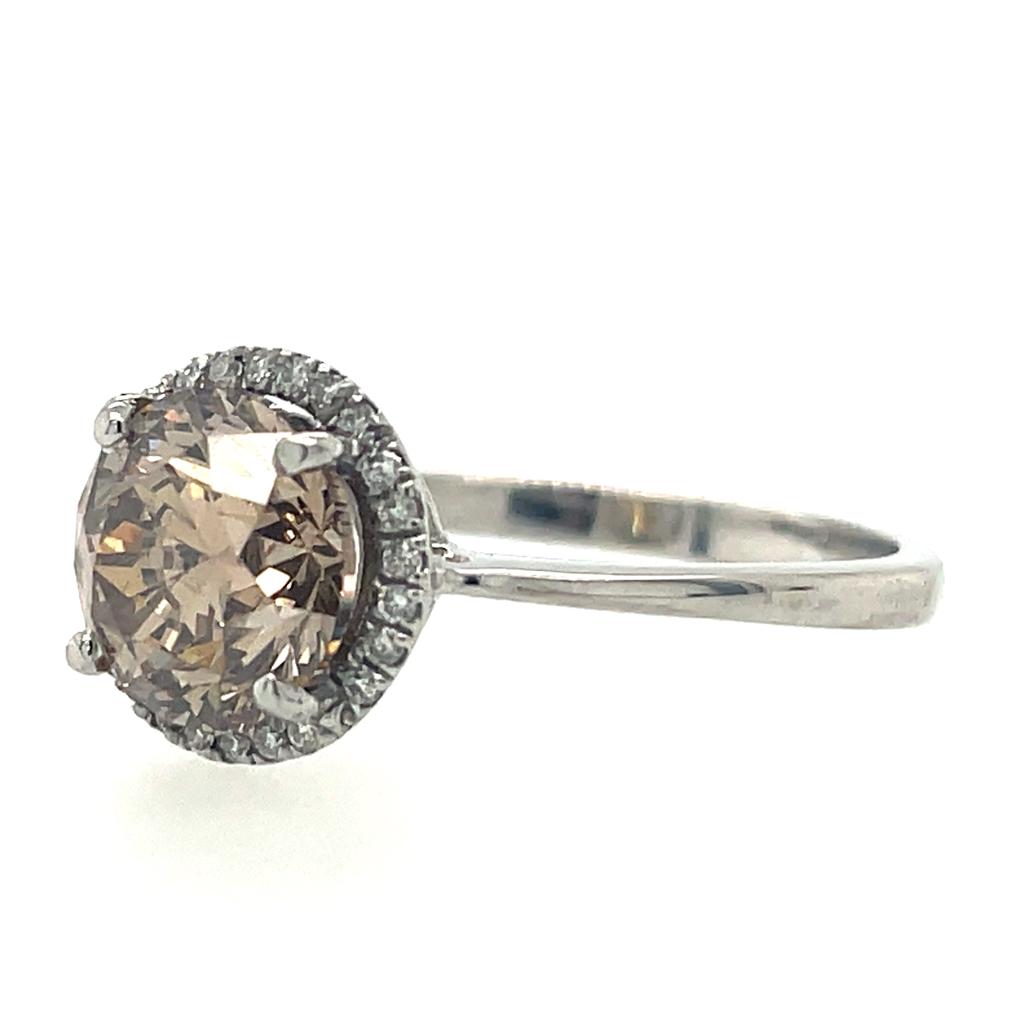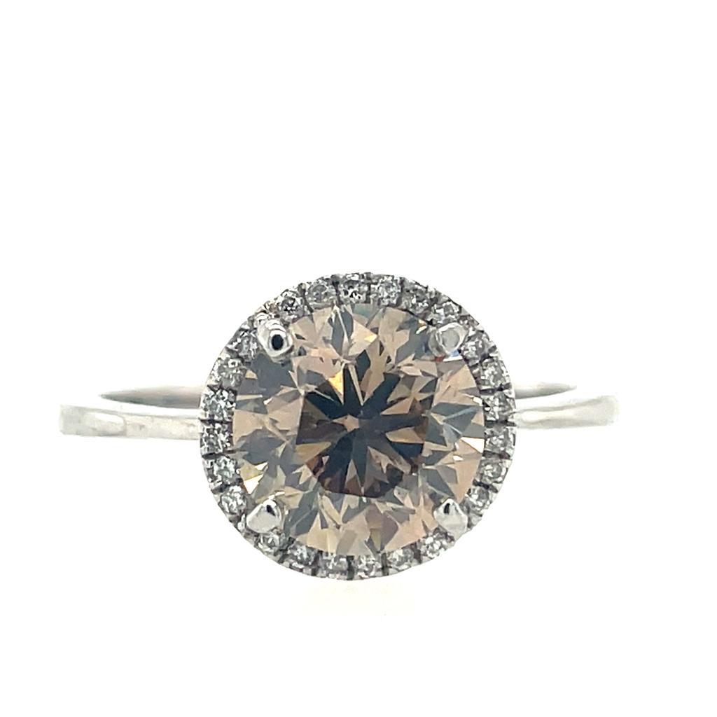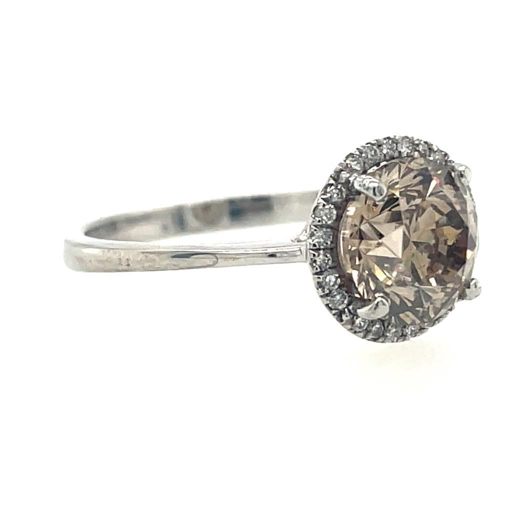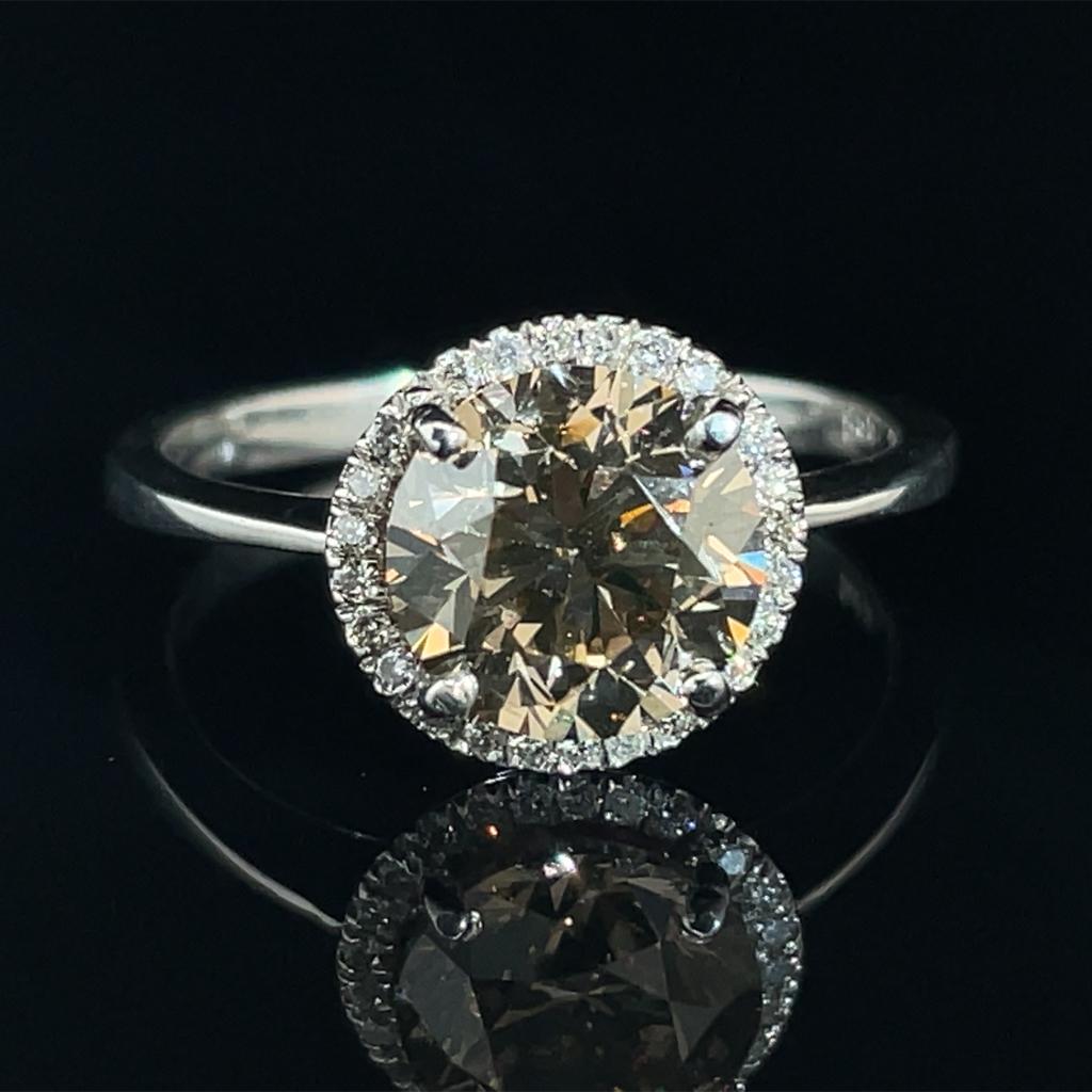 ANELLO IN ORO BIANCO 14K 2.40 GR CON DIAMANTE DA 2.06 NATURAL FANCY CHAMPAGNE SI1* (PUREZZA ESALTATA) + BRILLANTI PER 016 CARATI COLORE F PUREZZA VS1-2 TAGLIA-7 - CERTIFICATO GEMMOLOGICO MAROZ DIAMONDS LTD MEMBRO ISRAEL DIAMOND EXCHANGE - RNG21211