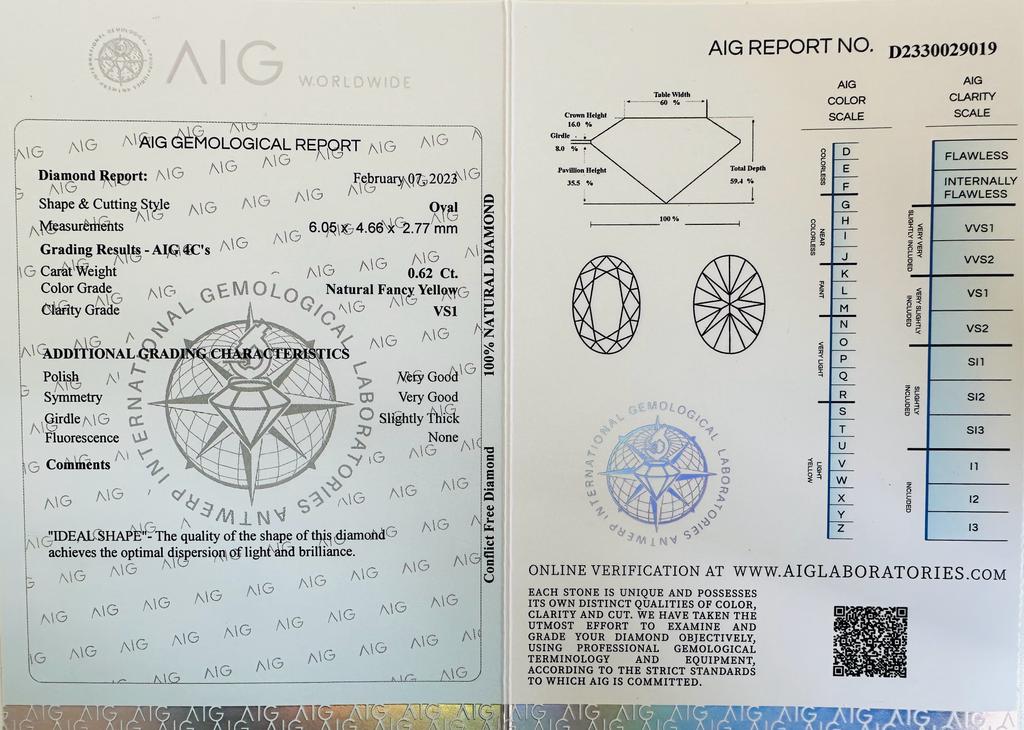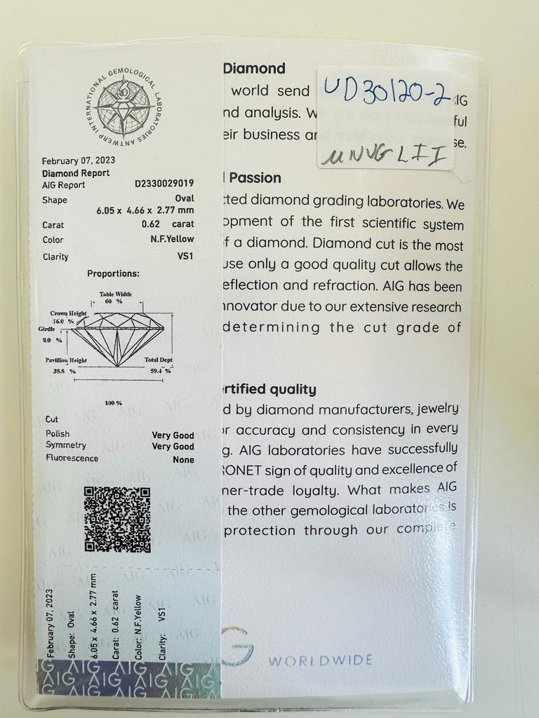 DIAMANTE NATURAL POLISHED 0,62 CARATI NATURAL FANCY GIALLO - PUREZZA VS1 - TAGLIO OVALE - UD30120-2