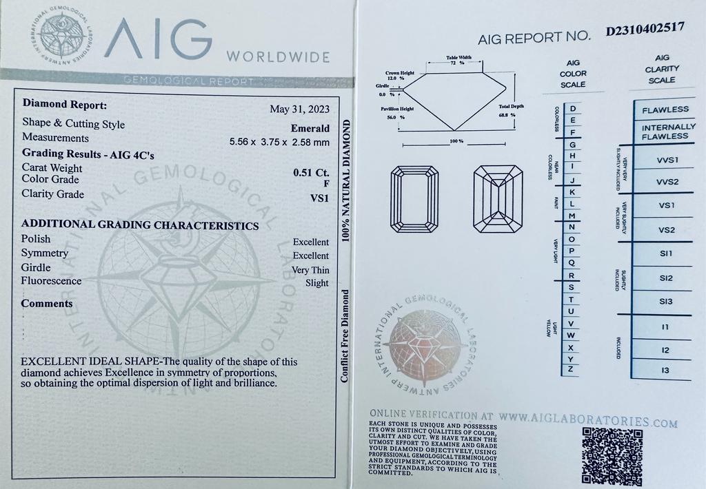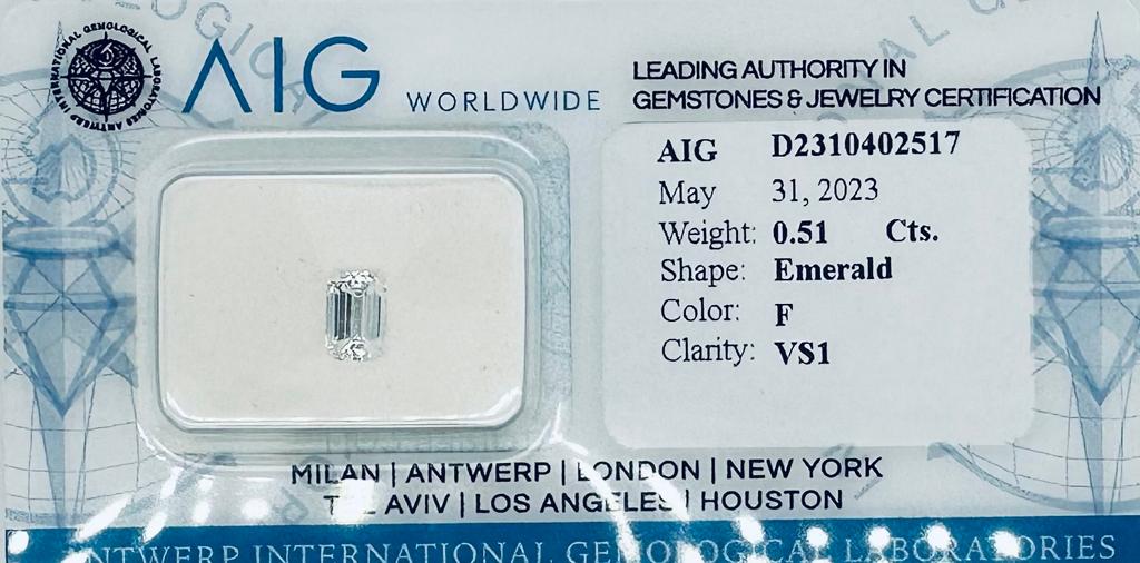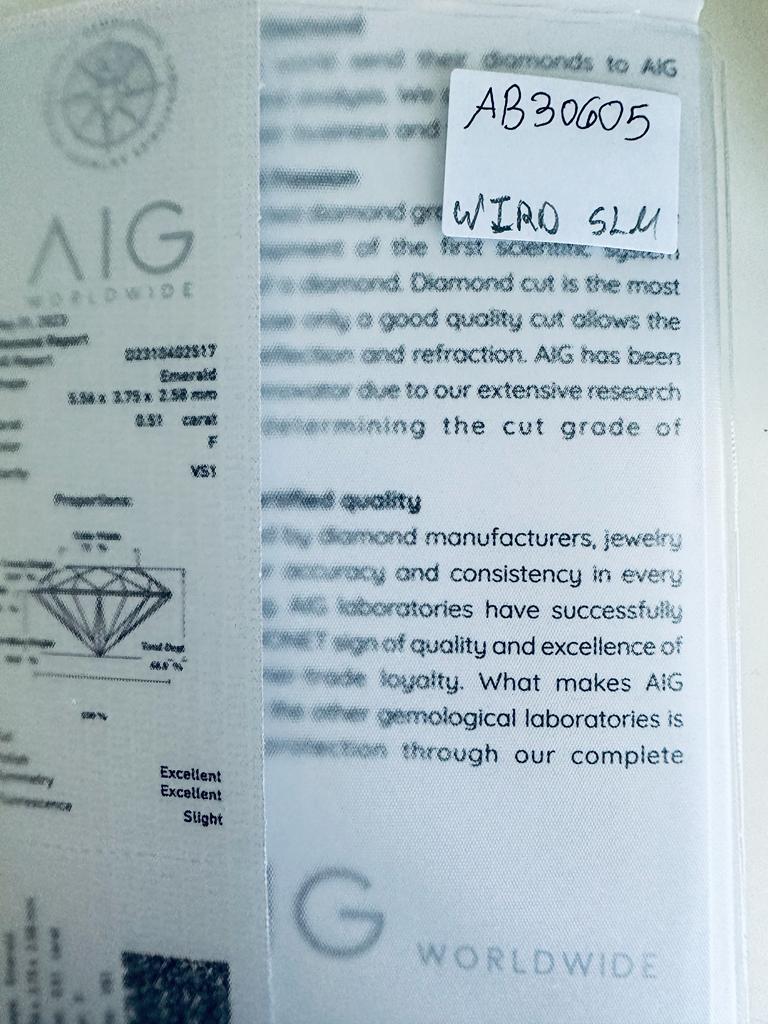 DIAMANTE 0,51 CARATI COLORE F - PUREZZA VS1 - TAGLIO SMERALDO - AB30605
