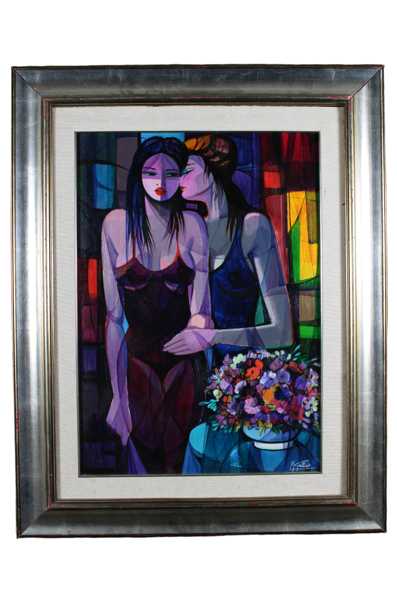 MARCELLO GALLESE olio su tela le amiche h cm 50 x 70