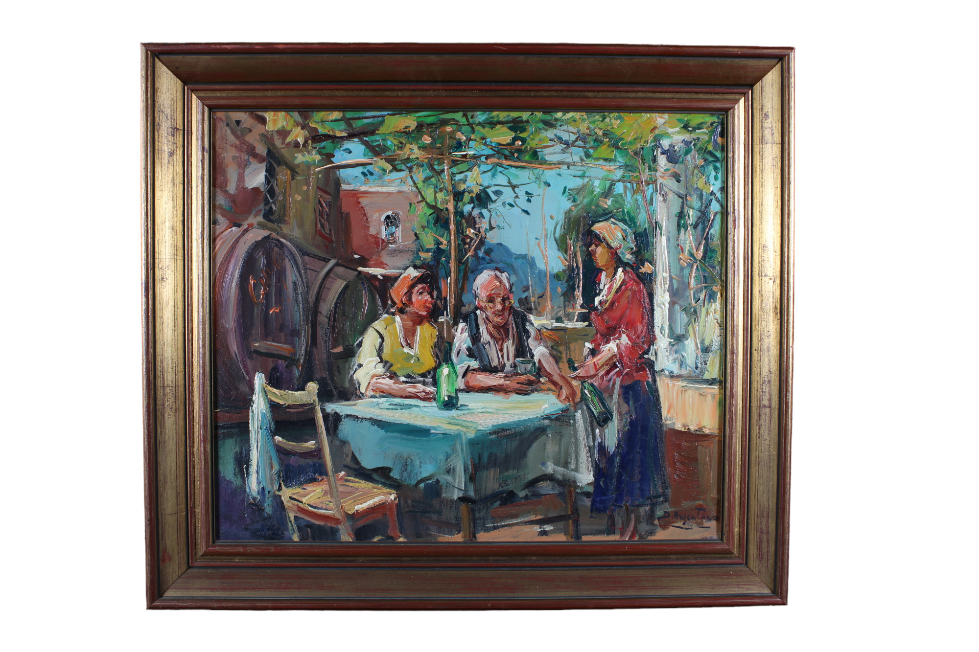 D.ARGENTANA olio su tela scena di vita quotidiana h cm 52 x 61