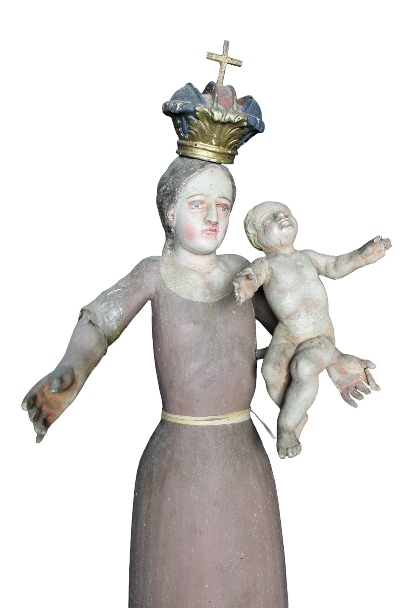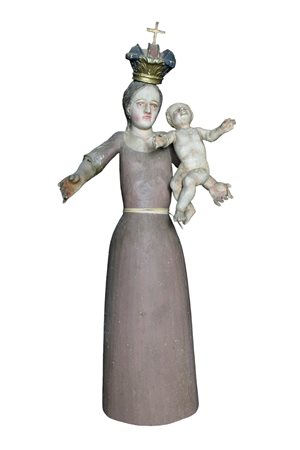 SCULTURA A TUTTO TONDO in legno dipinta raffigurante figura femminile manifattura italiana XVII/XVIII secolo h cm 76 x 31 x 16