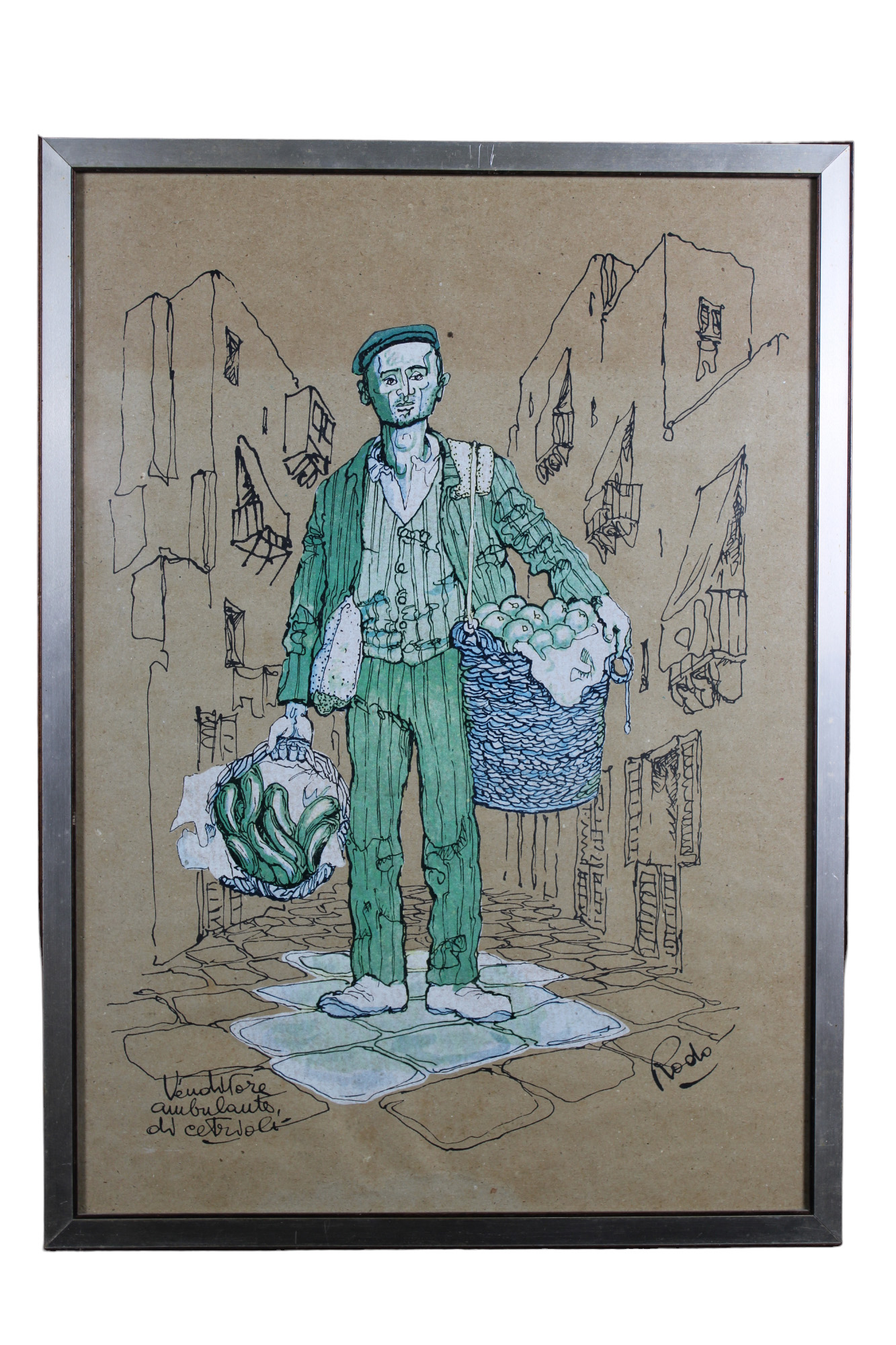 RODO tecnica mista su carta Venditore ambulante di cetrioli h cm 69 x 49