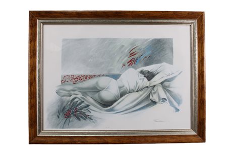 FRANCO LO CASCIO serigrafia Riposo di ragazza corredato da certificato sul retro h cm 50 x 70