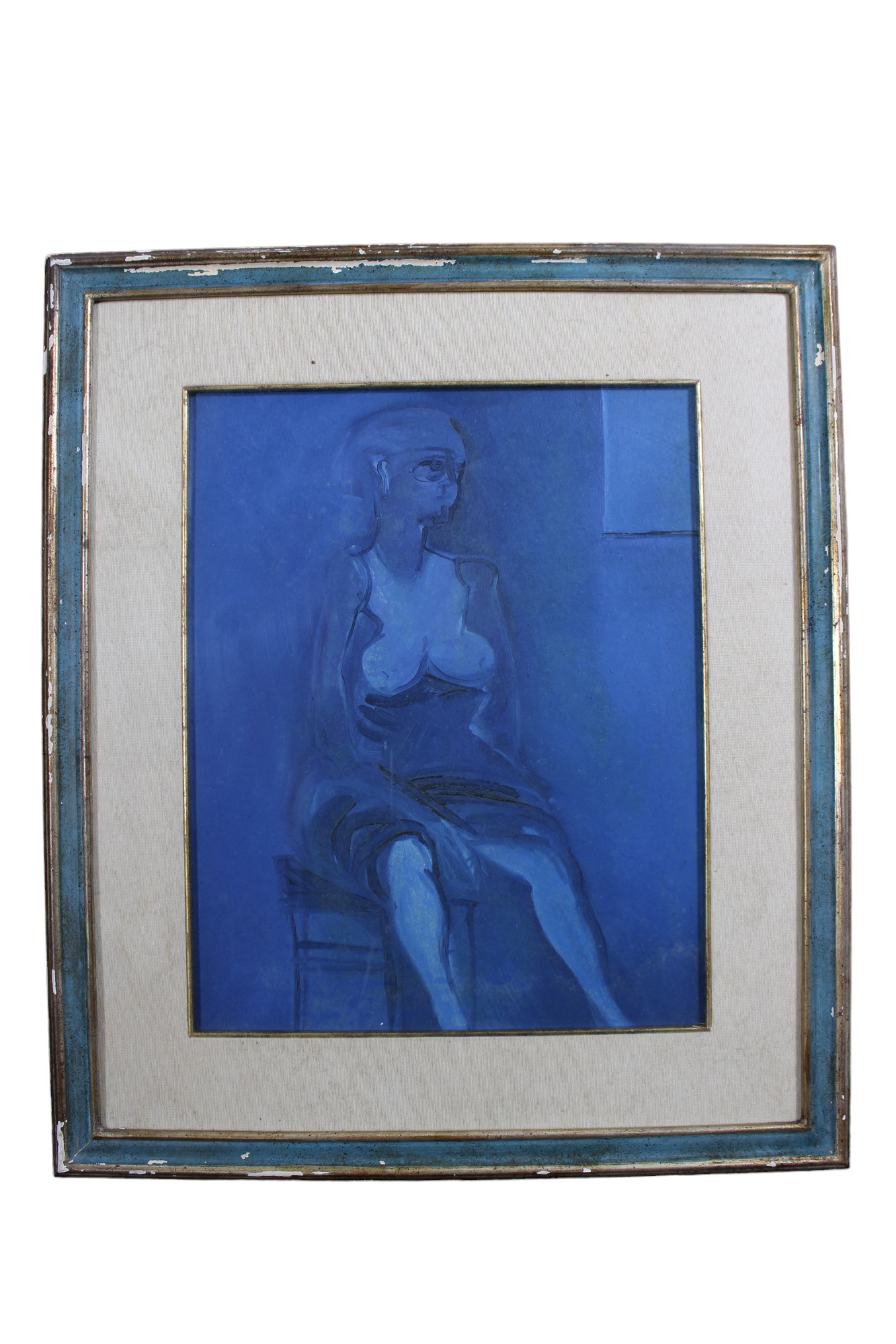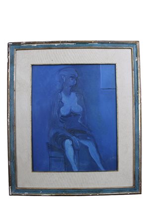 OLIO SU TELA raffigurante donna in blu h cm 50 x 40
