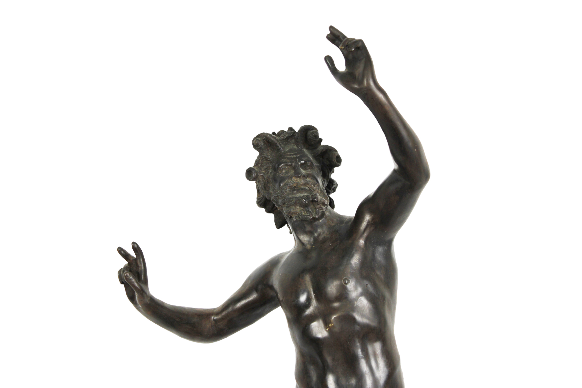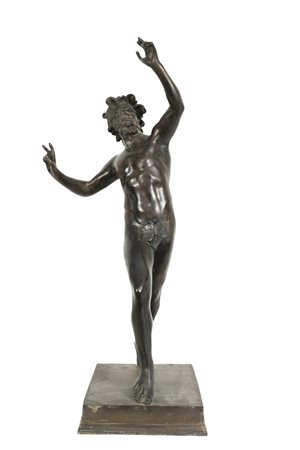 SCULTURA in bronzo patinato raffigurante fauno danzante fonderie napoletane XIX/XX secolo h cm 79 x 33 x 39
