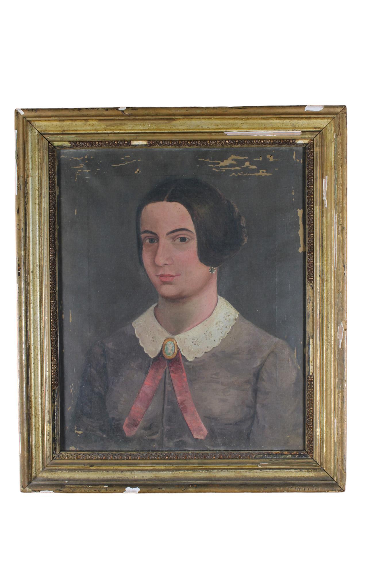 OLIO SU TELA ritratto di donna usure del tempo alla tela h cm 50 x 40 / cornice h cm 61 x 52
