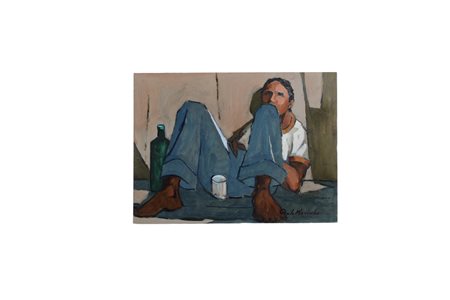 PAULO MARINHO 1976 olio su tavola Ragazzo al riposo h cm 50 x 60
