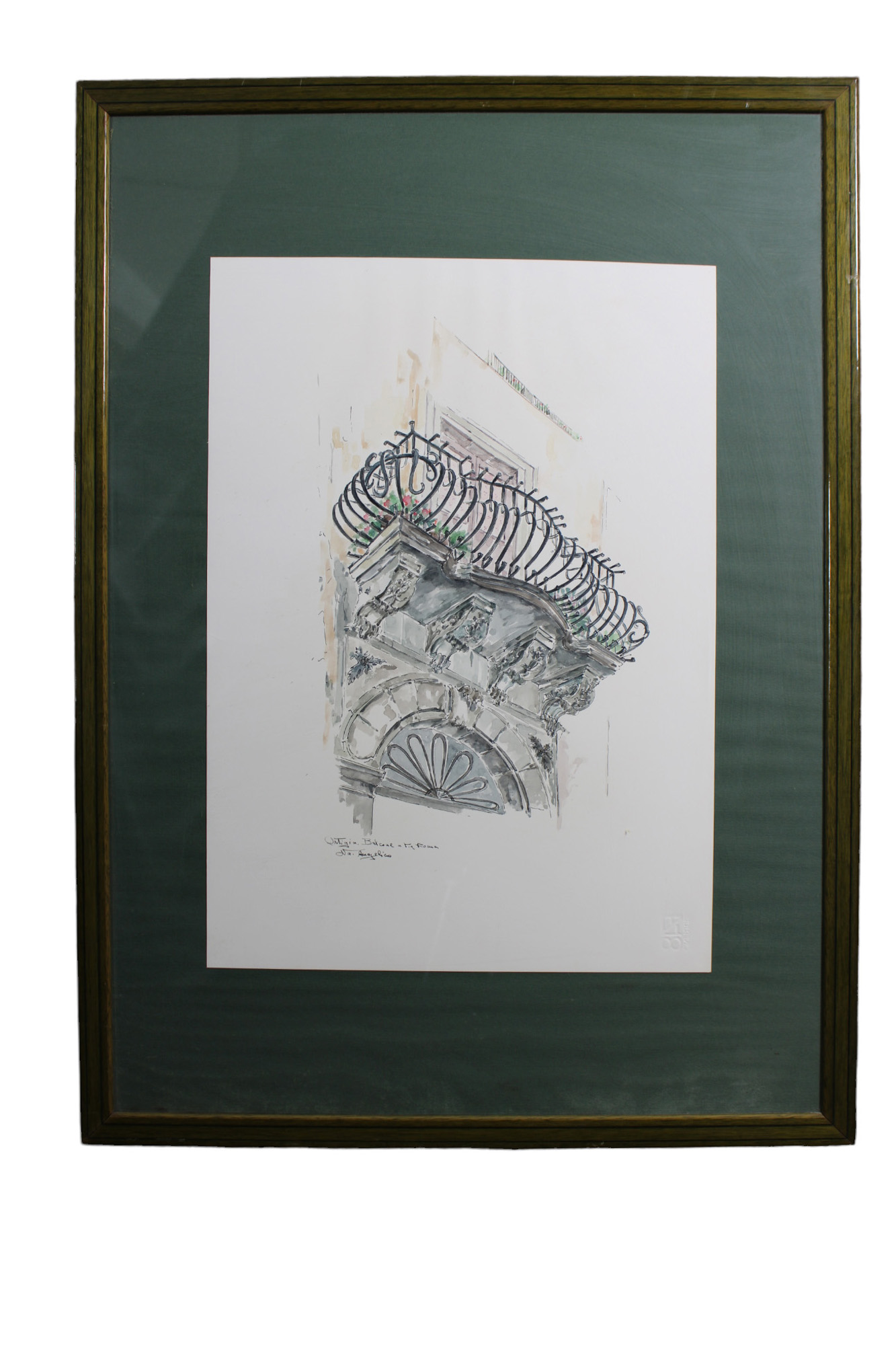 ANGELICO acquerello raffigurante balcone a Ortigia h cm 49 x 35
