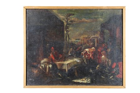 OLIO SU TELA raffigurante scena bibblica h cm 33,5 x 42,5