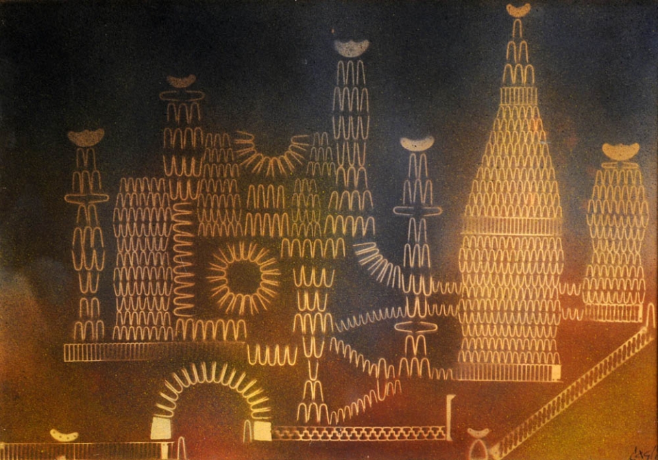 CORRADO CAGLI 1910 - 1976 " Composizione ", 1949 Tecnica mista su carta telata, cm. 71 x 101 Firmato e datato in basso a destra Etichetta Galleria d'Arte del Cavallino Venezia, sul retro Prov. Collezione Privata
