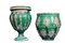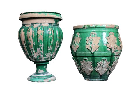LOTTO DI 2 VASI in terracotta maiolicata manifafttura caltagirone, usure del tempo XIX secolo h cm 50 x ø 32 / h cm 42 x ø 40